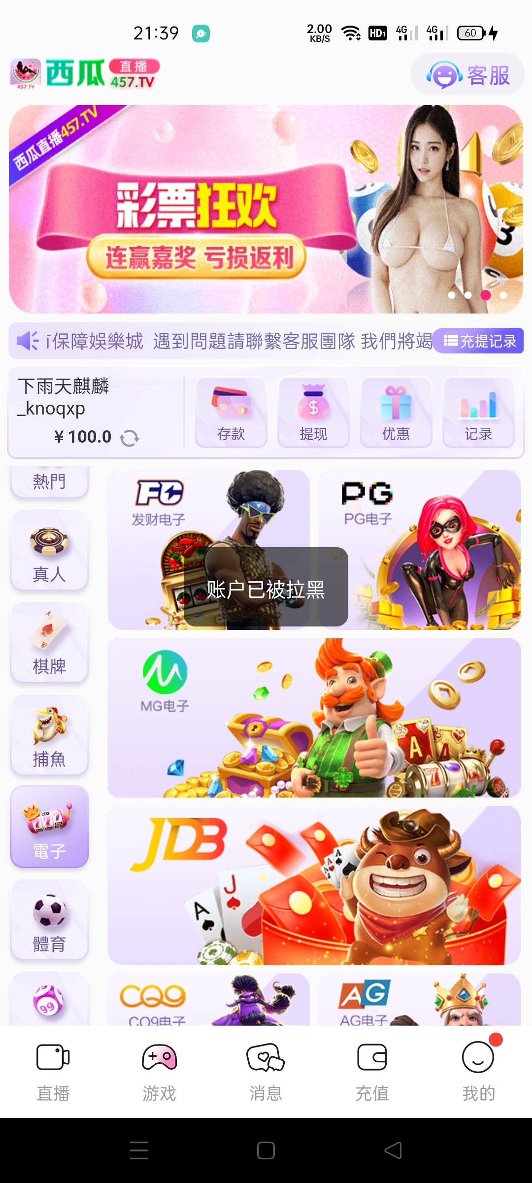 八点多接到电话送的38,打到100提现直接拉黑了。其他黄播从来没被拉黑过,玩了几十个黄播第一次被黑,送得起玩不起,真6