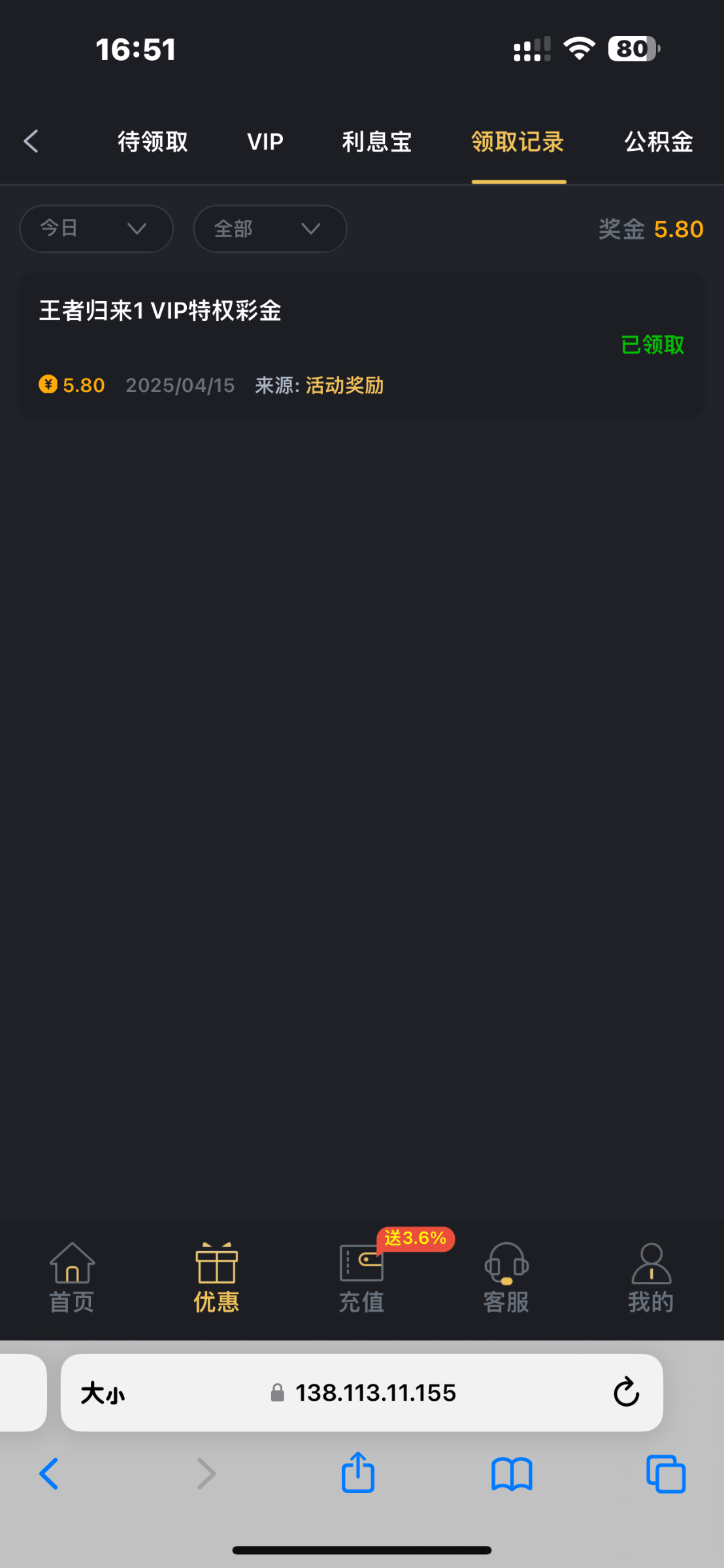 有玩过投注的上去看看,应该有几块钱,我领了一个5.8个毛3.8,网址9802.com