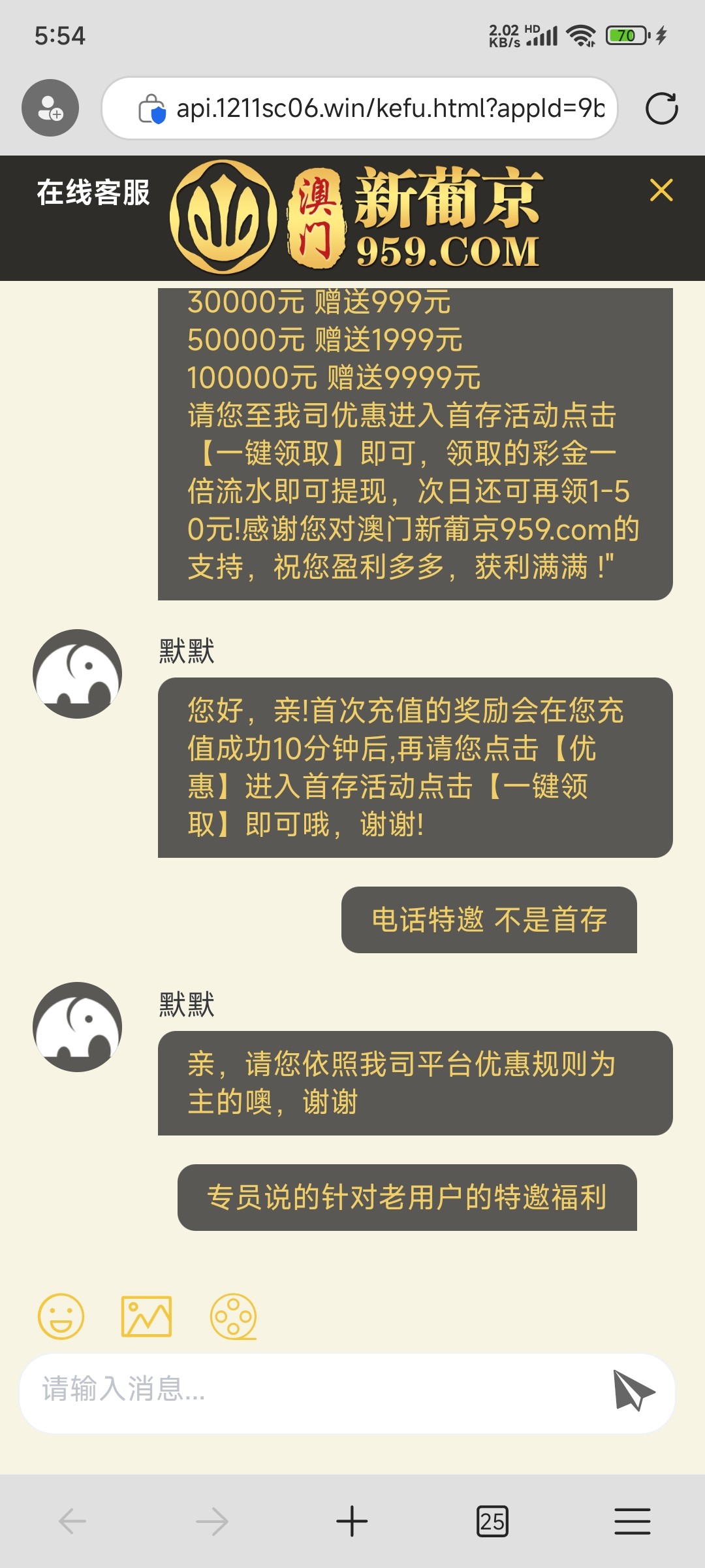 959煞笔台 打电话说针对老用户特邀充多少送多少 结果是骗充值