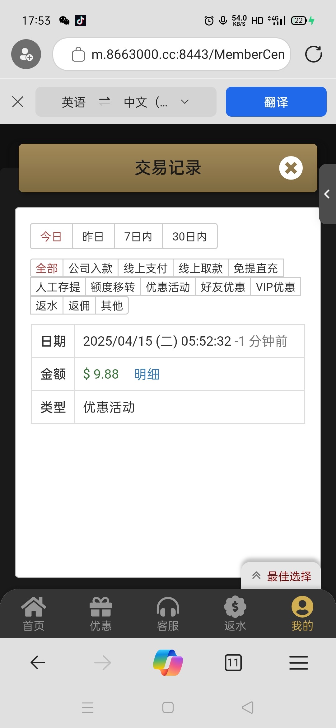 到了13.88提了20块吃饭