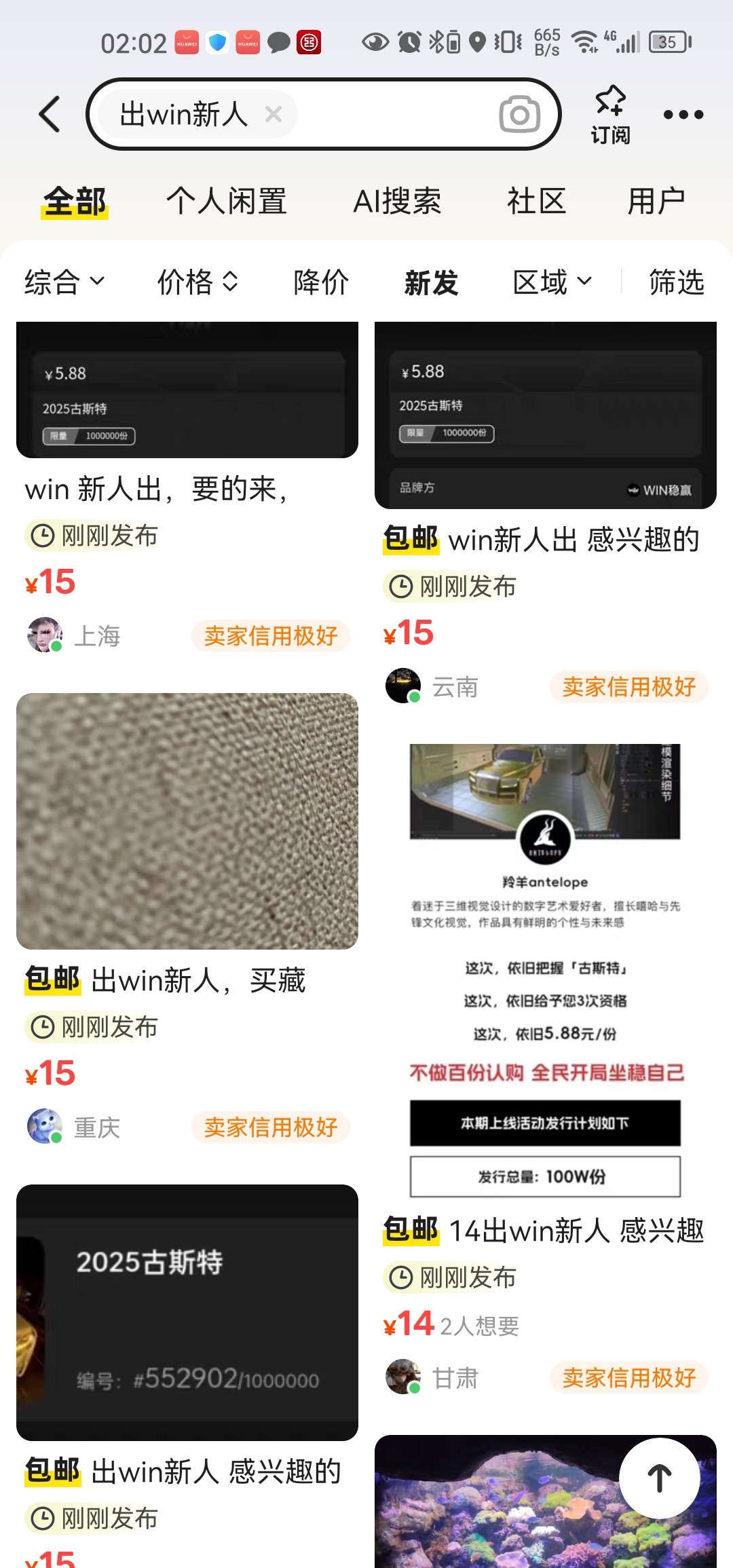 咸鱼出win新人出14元,买5.88藏品