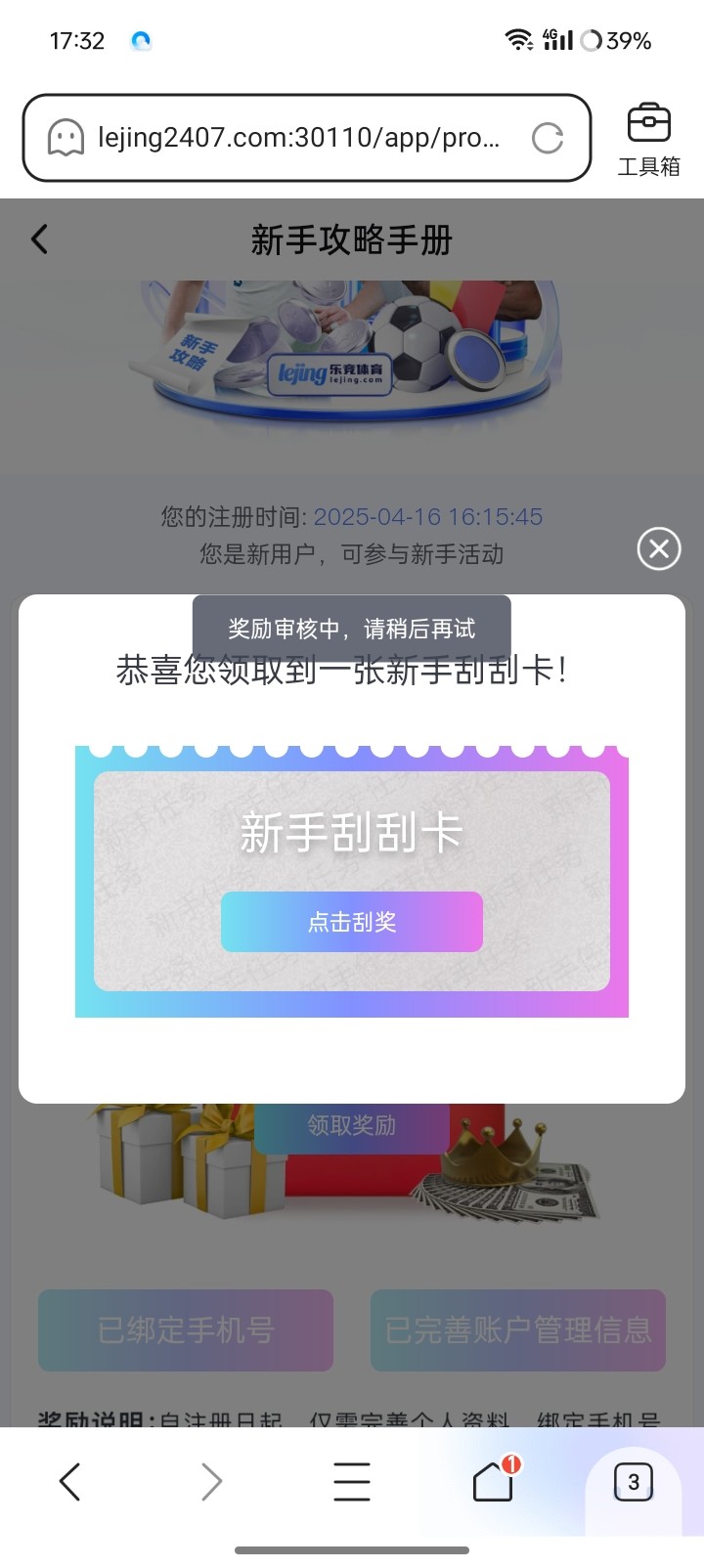 绑定手机号银行卡就可以领没打出来自己测试 地址 https://www.lejing2433.com