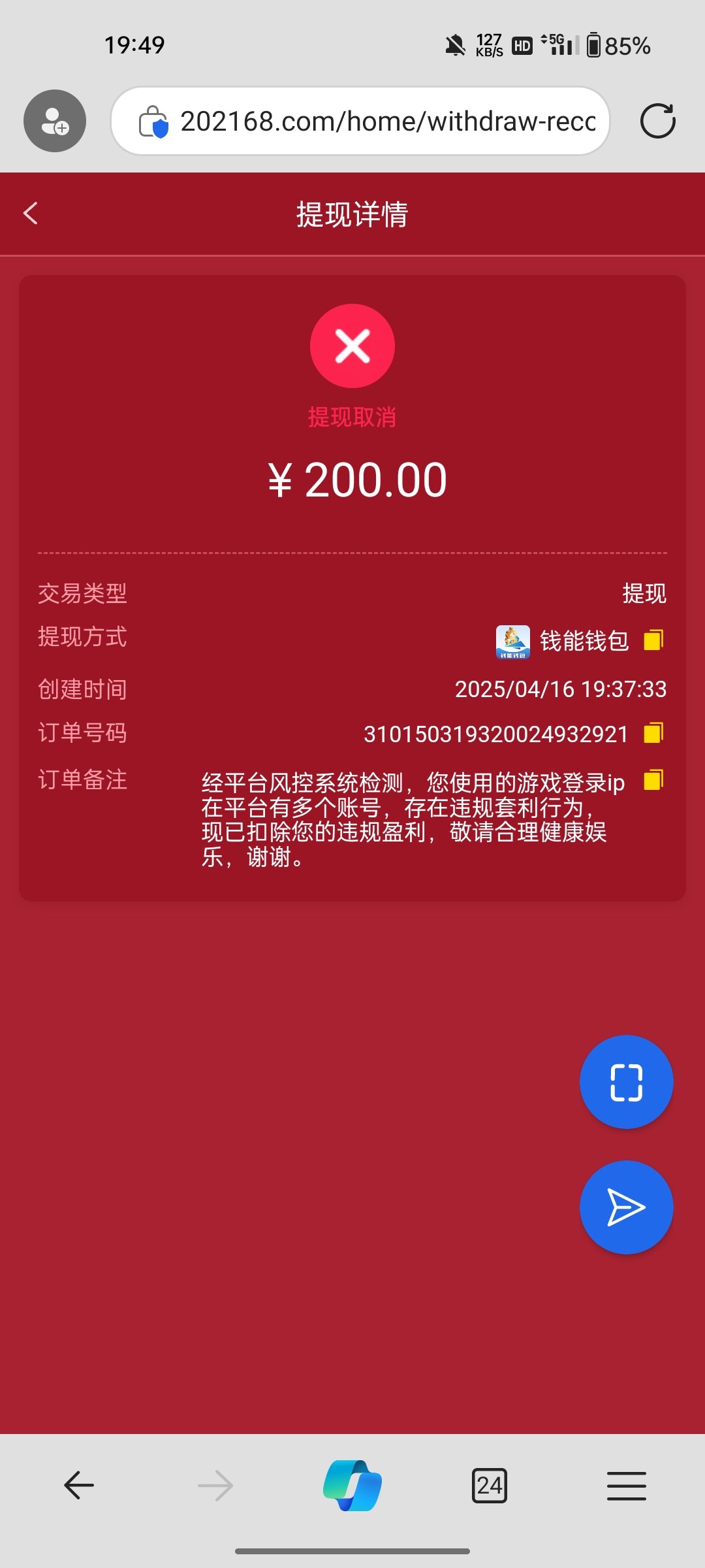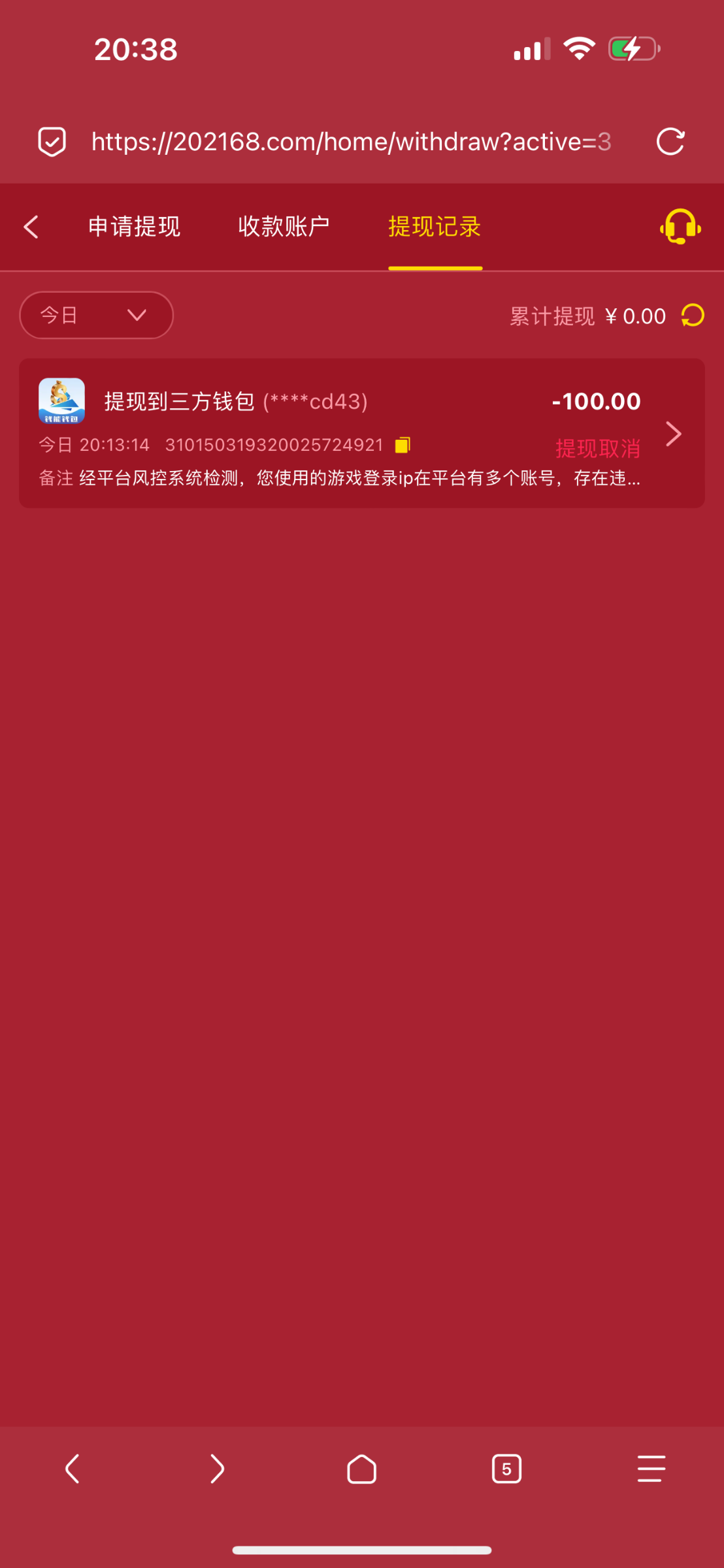 我也特邀回归送了38.刚才打到200 提现了,目前显示出款中,看了评论区,成功率几乎为0.我ip确实是有两个账号。