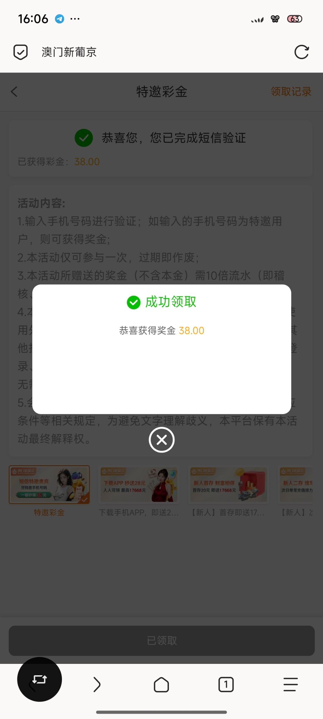 以前充值过78博大吧好像,没出,试了五六天每天都试,一直不是特邀,今天短信来了进去看就送了,看你们说黑的,没想到还给出了