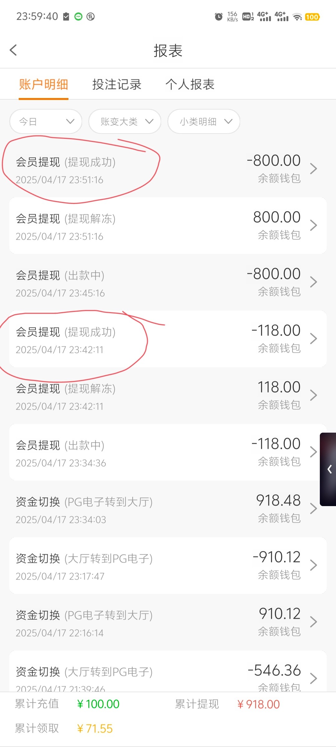 第1天100出了900 第二天连本带利全送回去了 麻痹