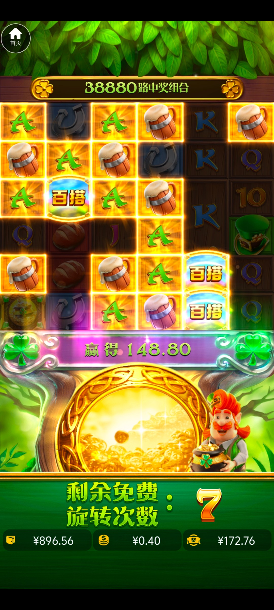 注册了没有碰到38,打了100+68首存出了118+800,麻1没有玩 麻2 女王 船长 亡灵大盗 爱尔兰精灵有水,看了一眼论坛 怕黑不敢打太多了,给了两次400倍都没有把握住