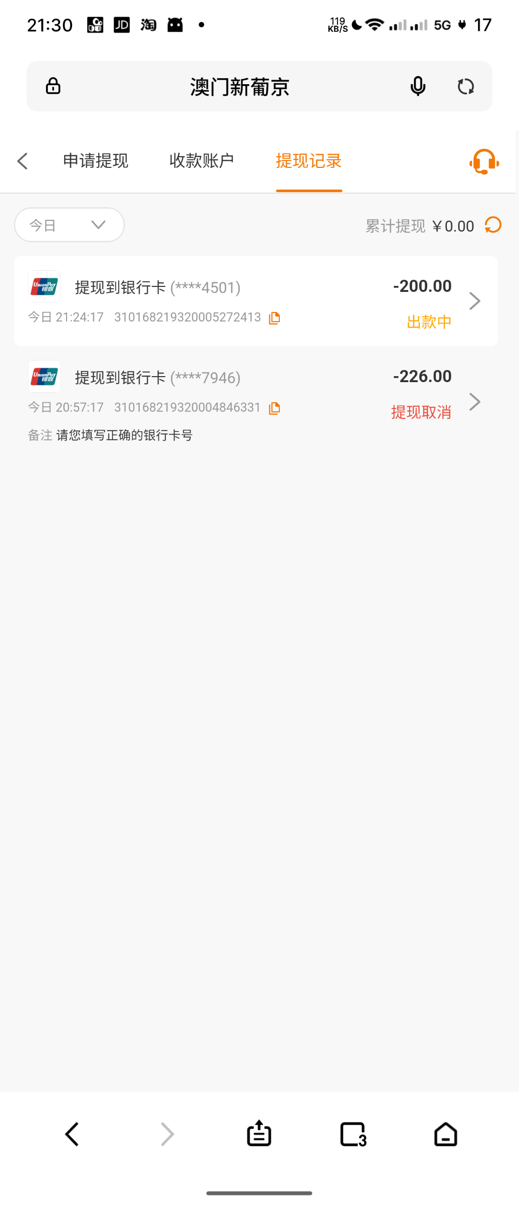 @jxs147258 ,是的,我刚提了100,第一次钱包退回来让我提卡,提卡秒到