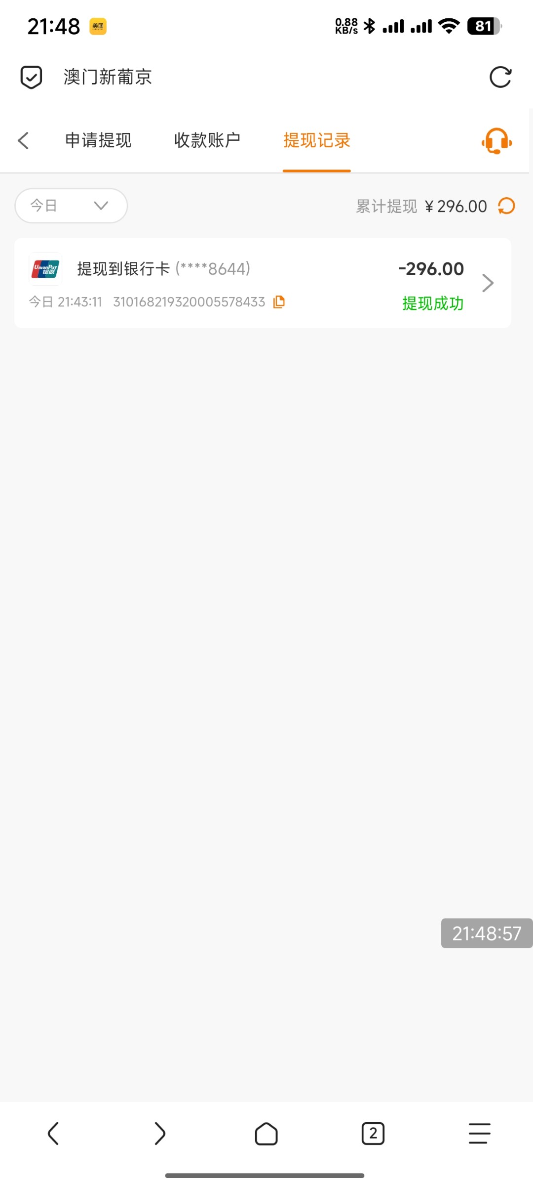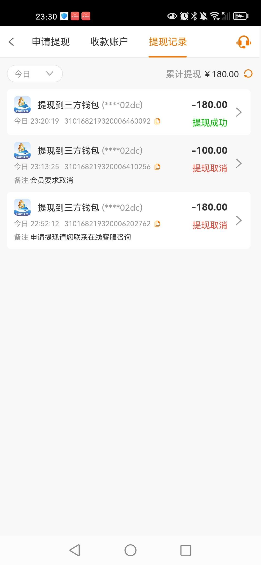 提款钱包180成功,我两个号,他叫我保留一个