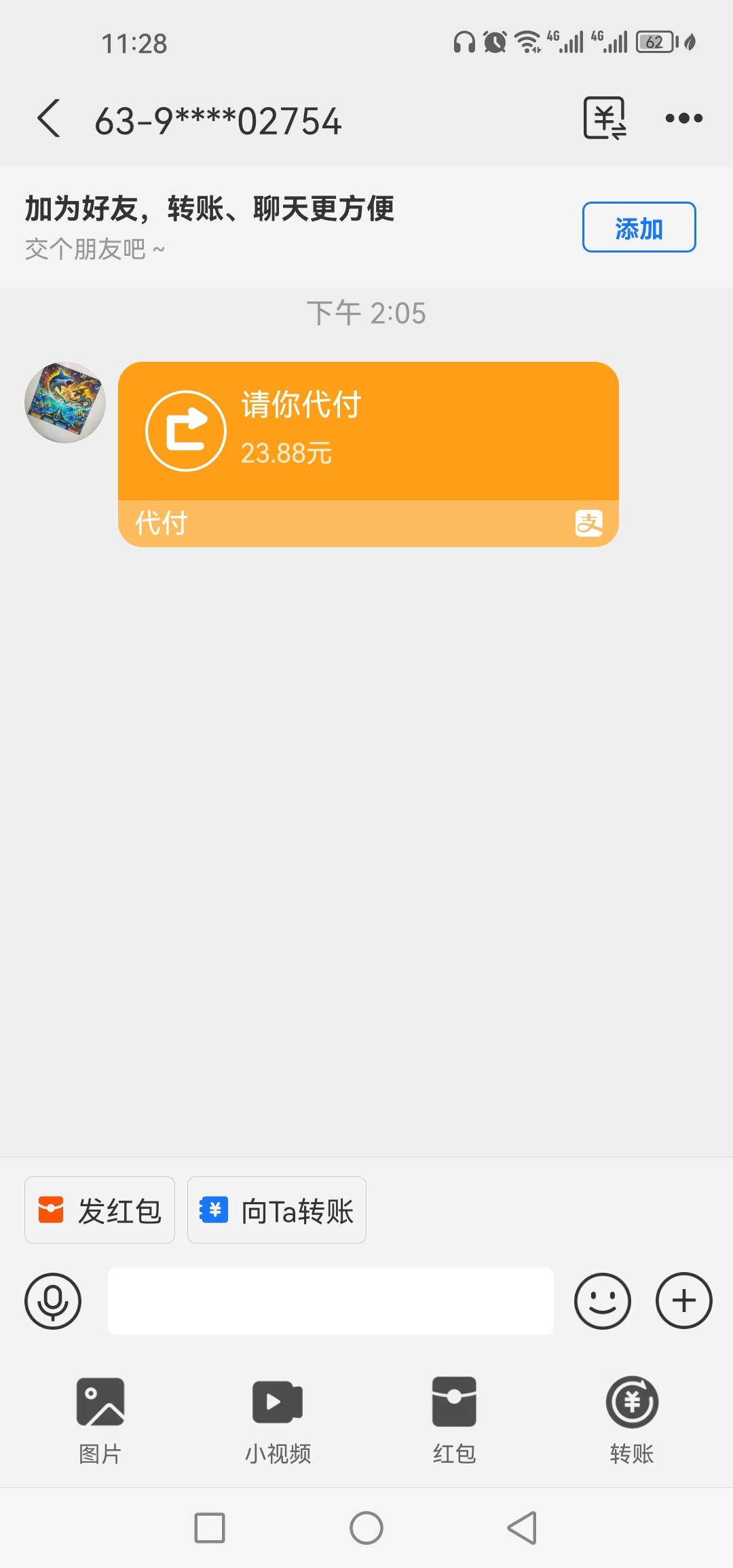 废物这是请你代付又不是给你转账。