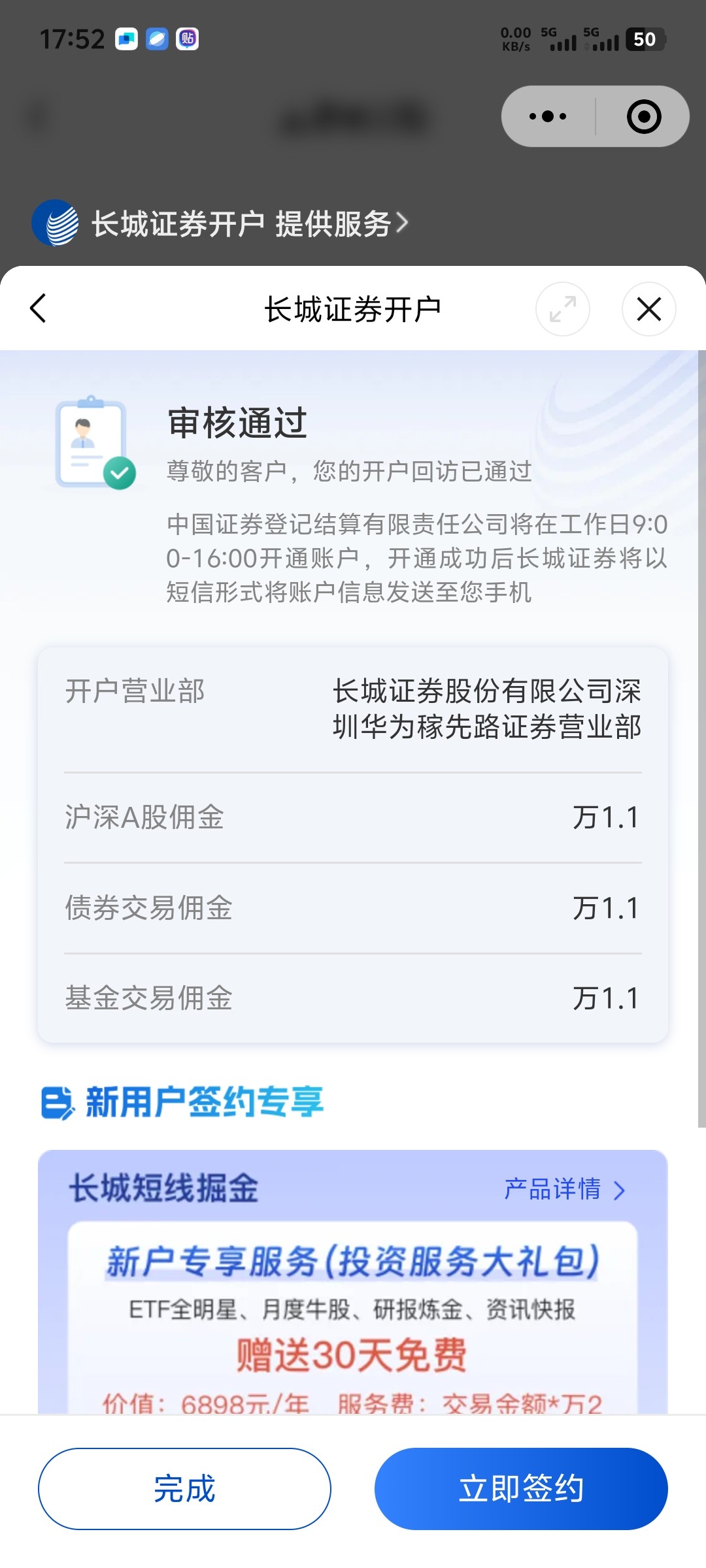 @白白嫖嫖怪怪 ,显示开户回访成功。没立减金。。。。上面写的有机会获得立减金我就是那个没机会的。。。