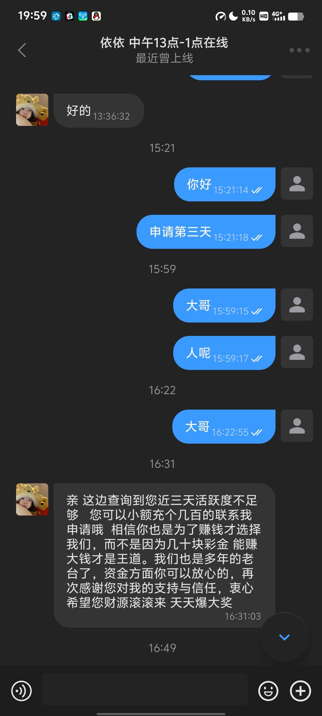 6368.vip死黑台,电话说送,注册好让充值,充值完又是套路,说好分三天送,去找她又是活跃不足,避雷,这种b台赢了也黑