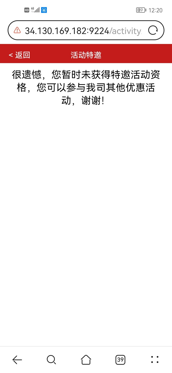 很遗憾,您暂时未获得特邀活动资格,您可以参与我司其他优惠活动,谢谢