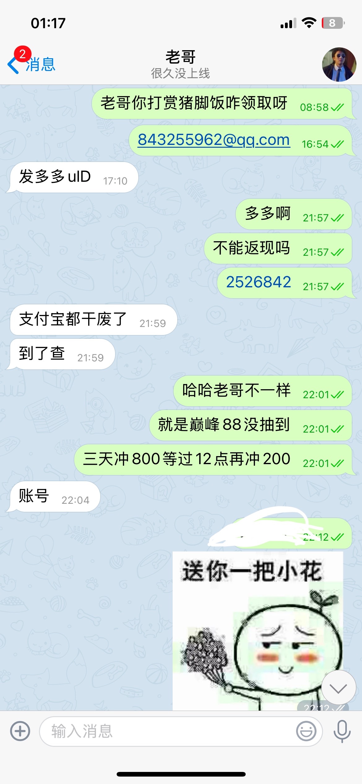 私聊老哥给我送了88豪爽又是打赏猪脚饭的