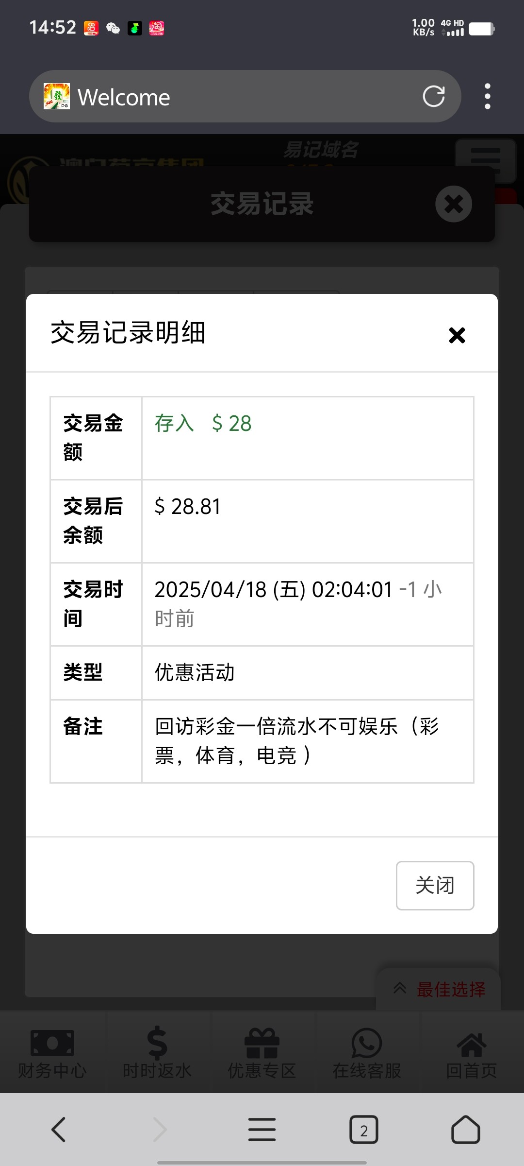 电话回访送了30没打出来,赌神去试试。