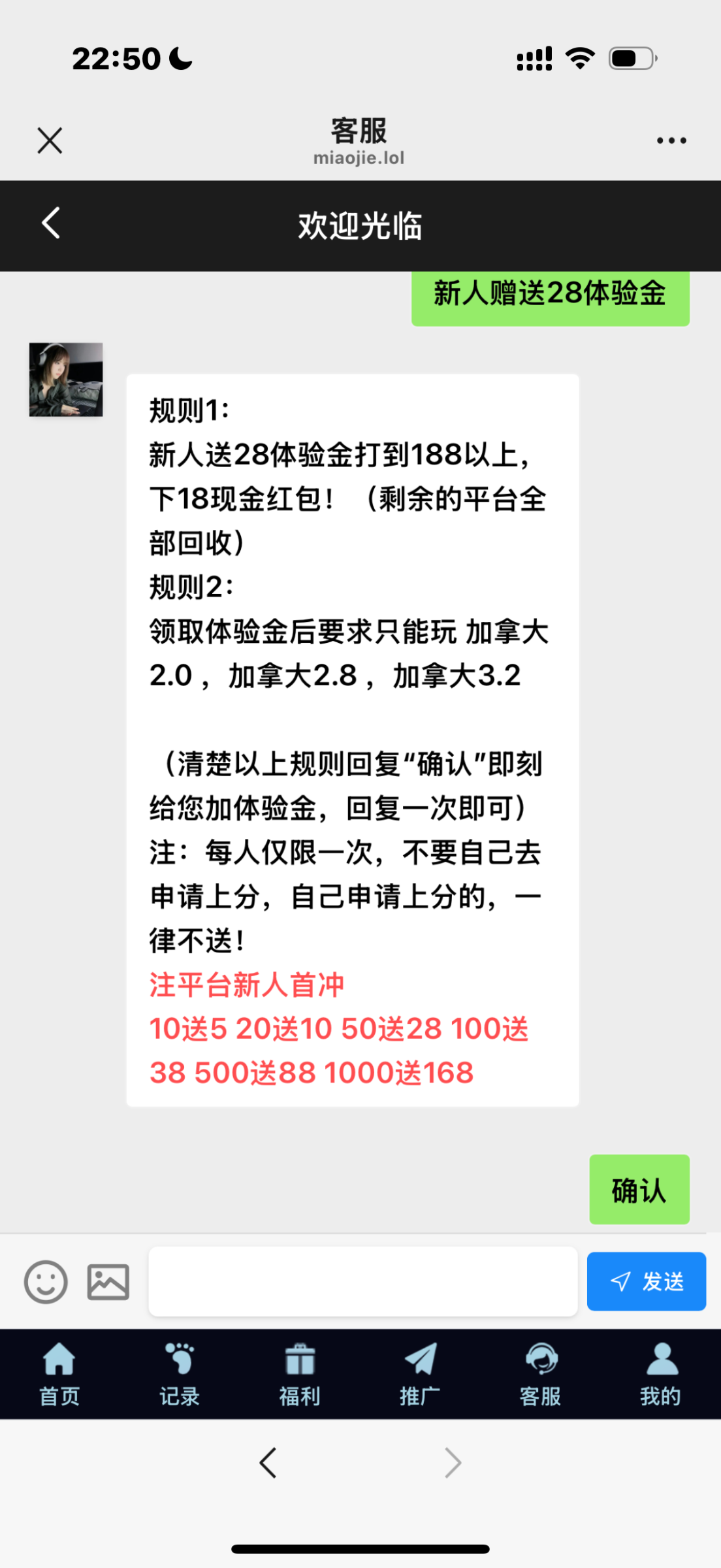 公众号重置了,微信扫码登录联系在线客服申请送28,说结束了等人少的时候再去