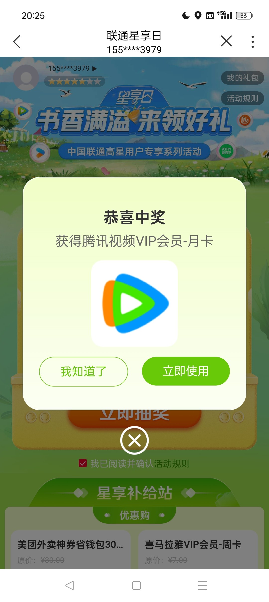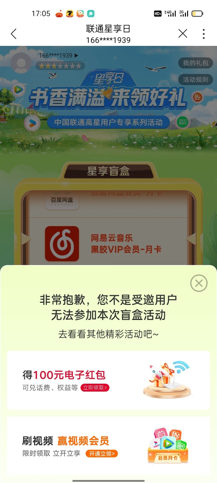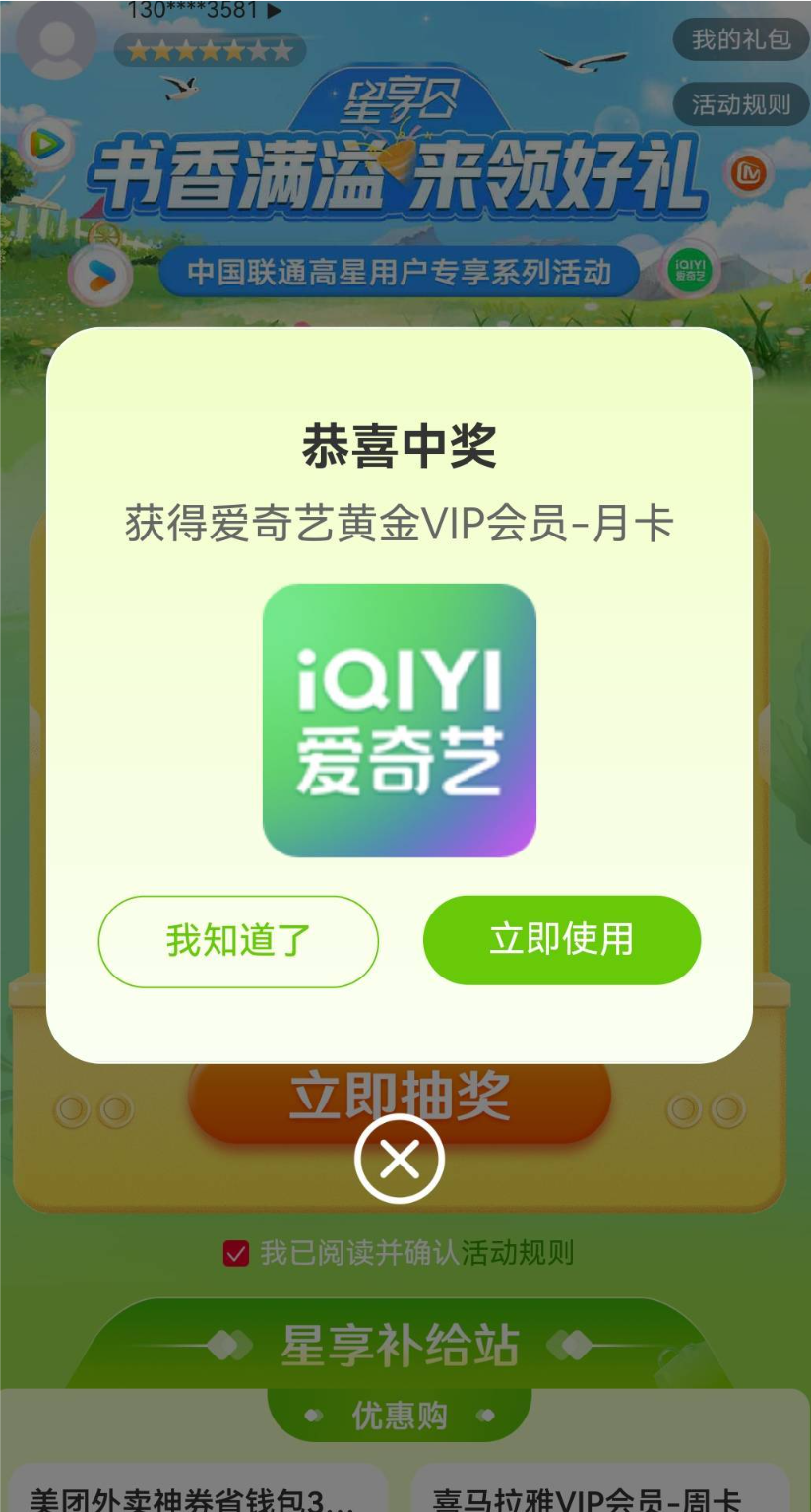 中国联通app5-6-7星会员搜索星享日抽奖。直充。