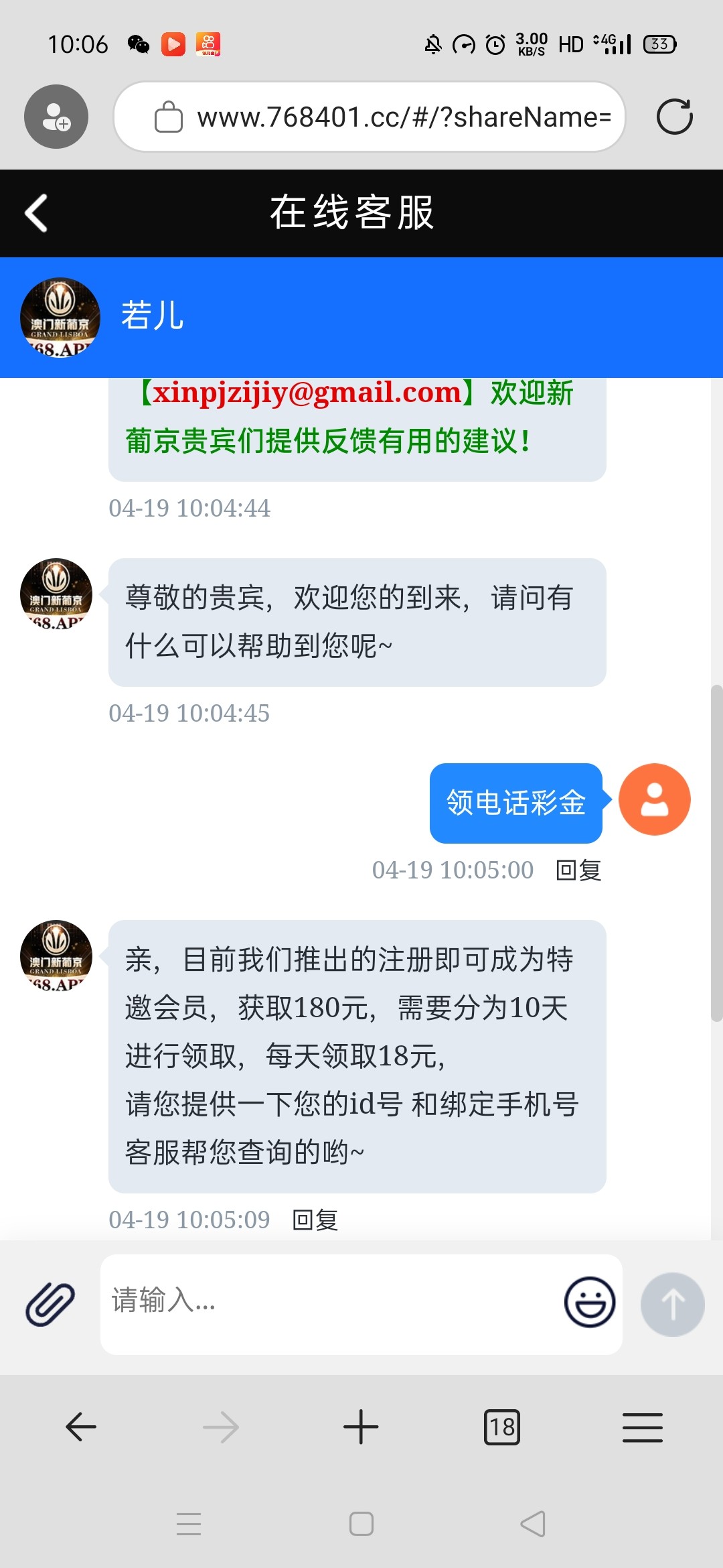 这台子打电话给我,我去领彩金叫我报代码768111。结果客服来一句ip多账号。