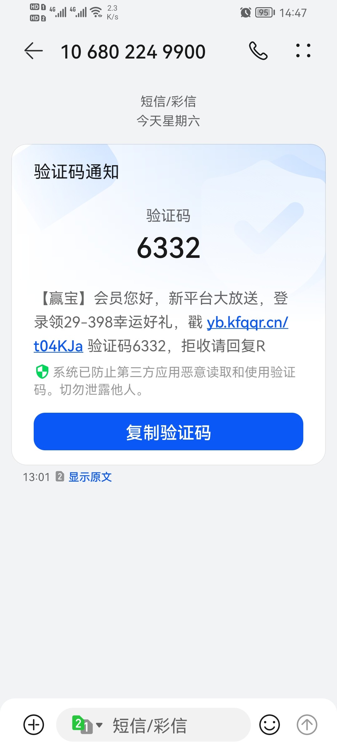 我也收到这短信了,就是打不开链接 楼主重新发一个链接
