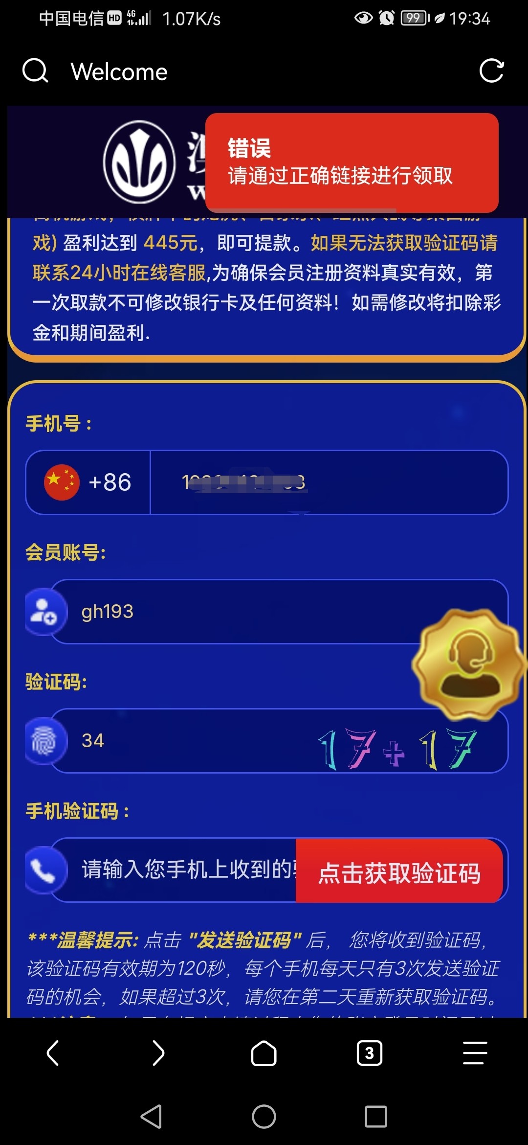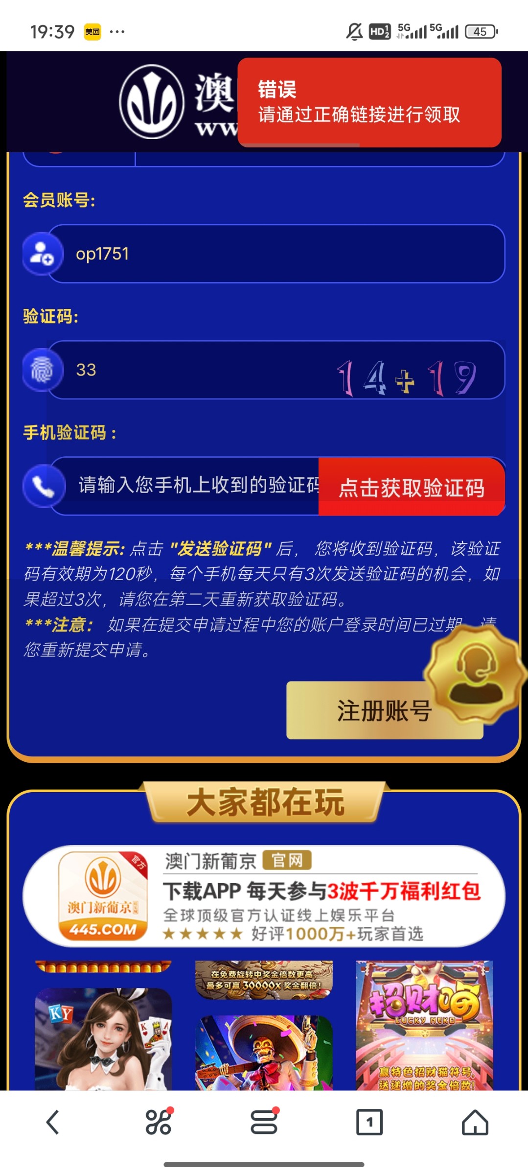 请通过正确链接领取。这是什么情况?