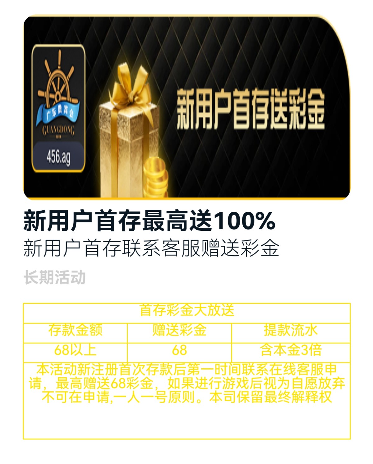 68+68,以小博大,提款包含本金3倍,绑定资料,找客服申请。我没打出来,老哥们加油!网址: 456.ag