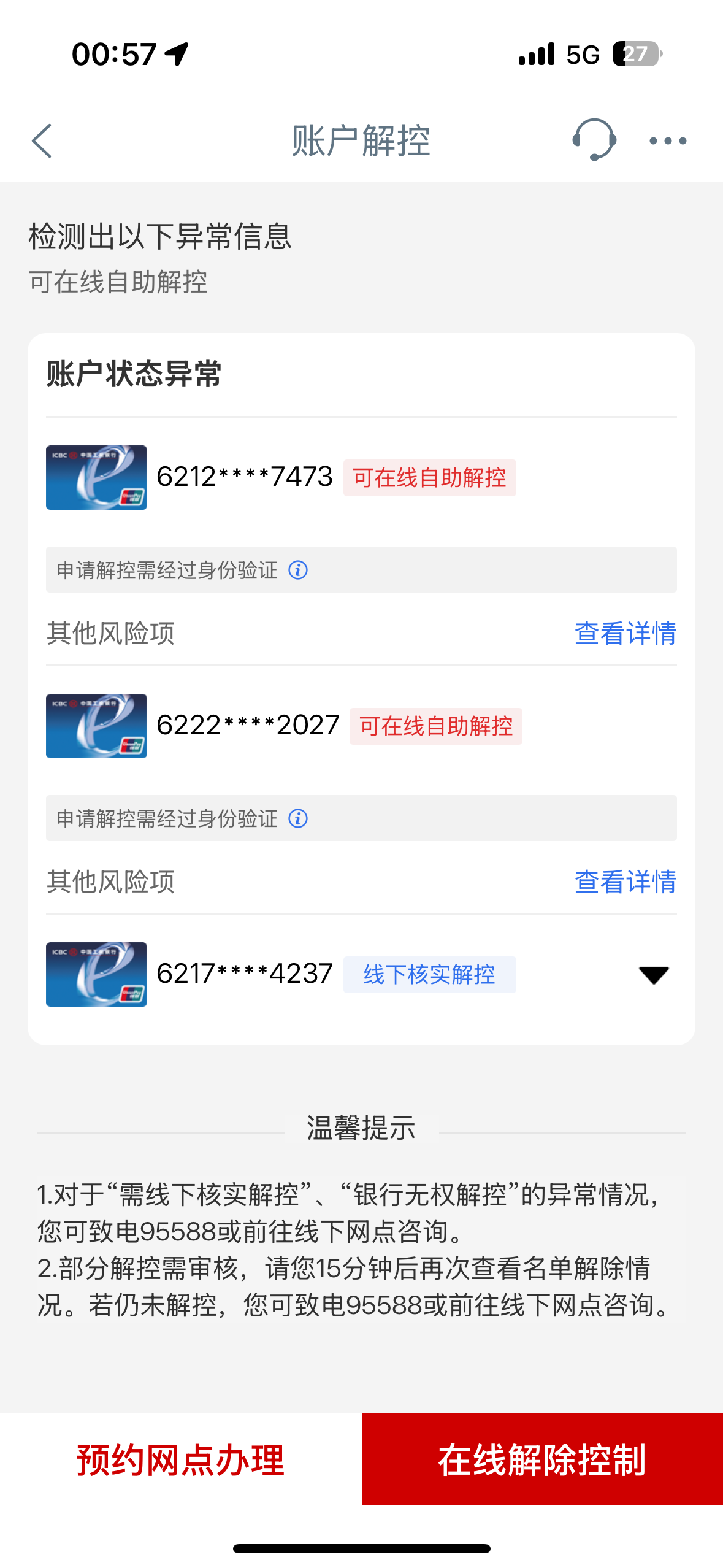 工商出现这个第二天不是自动解开吗 我的工商去年12月一次 第二天凌晨自动解开 昨天一次 现在我去微信发了个红包试了下也自动解开了