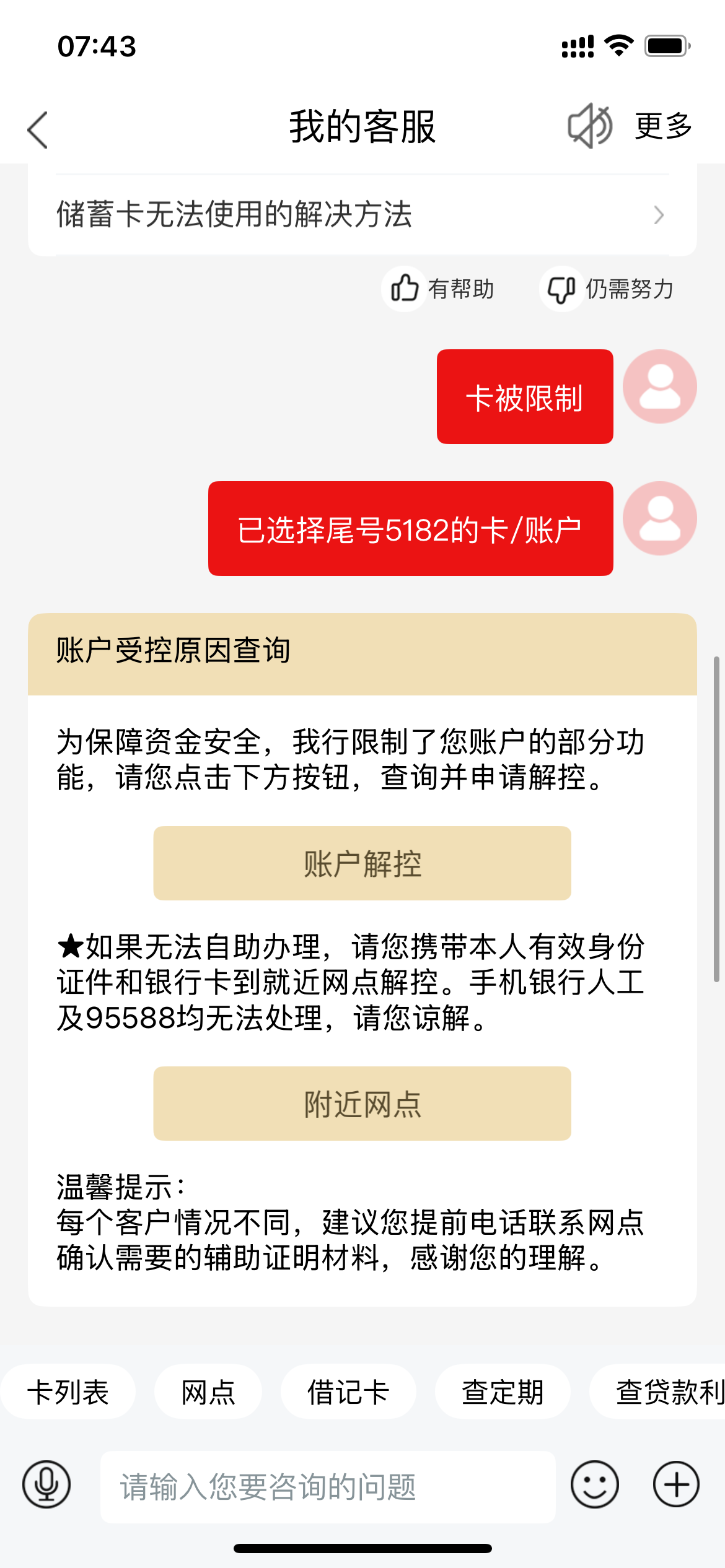 我也是这样 早上冻的 上午去银行解了