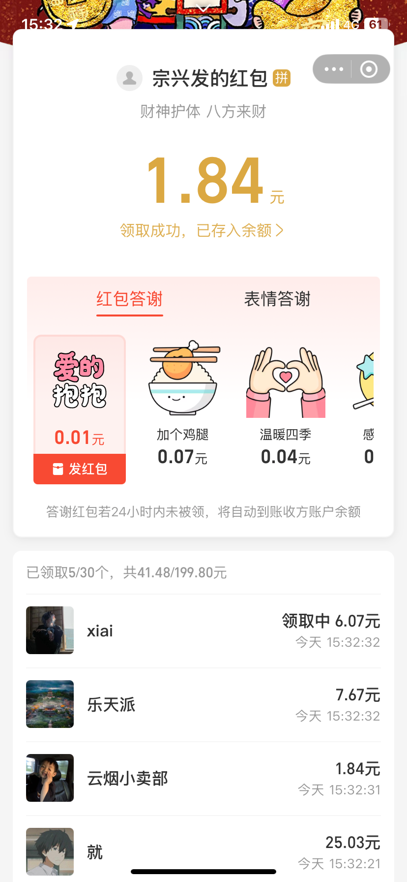 感谢老哥的红包