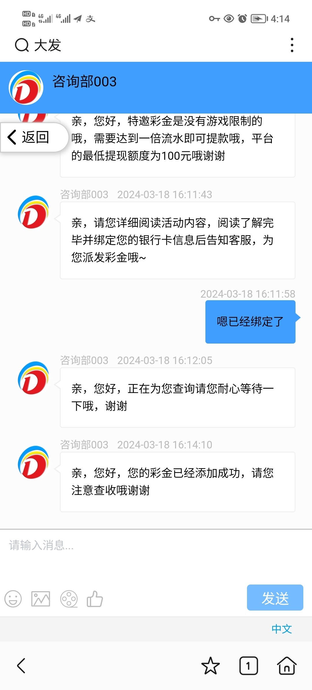 电话碰瓷直接注册然后找客服说电话彩金,