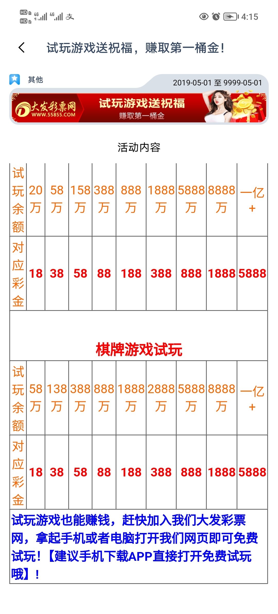还有就是他这个试玩可以兑换彩金