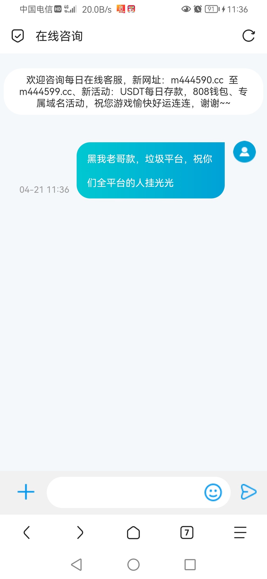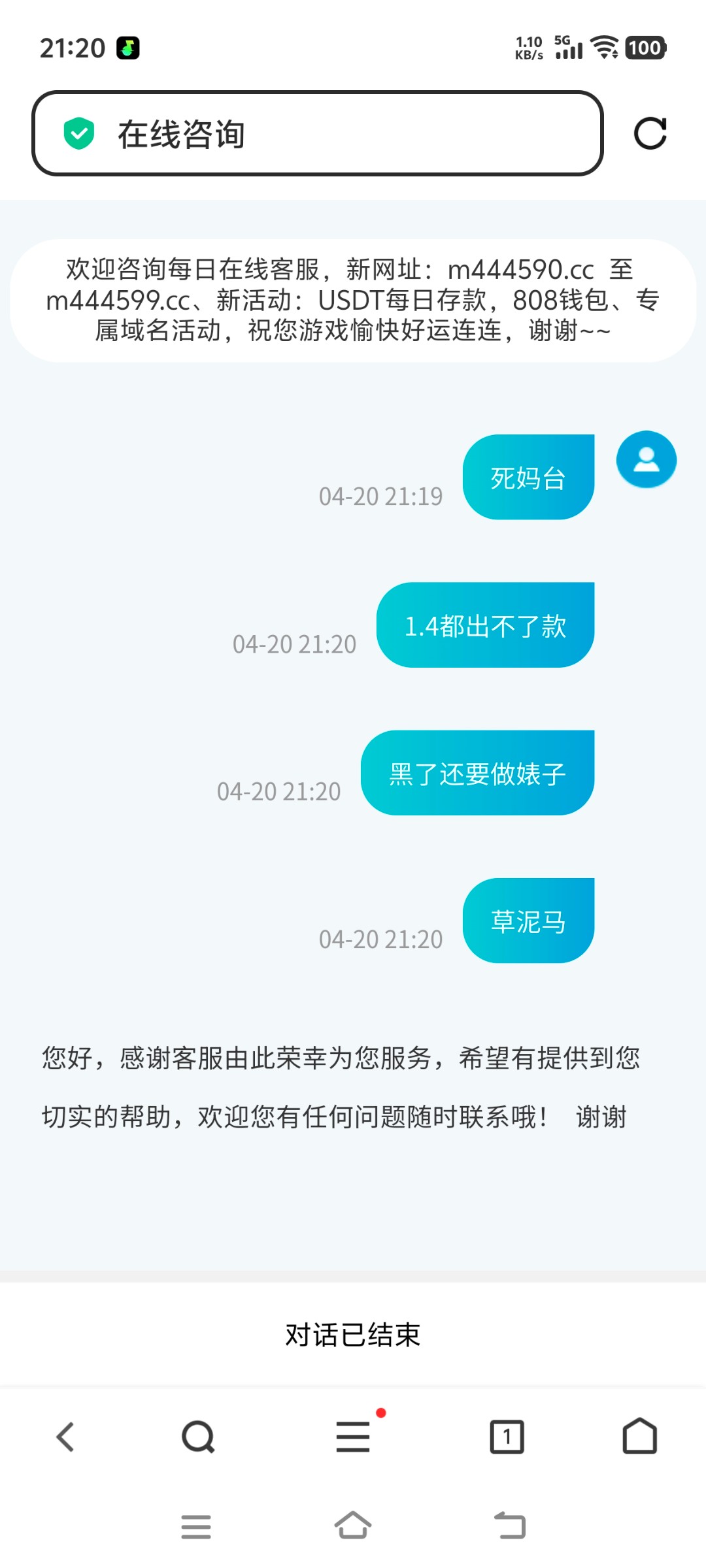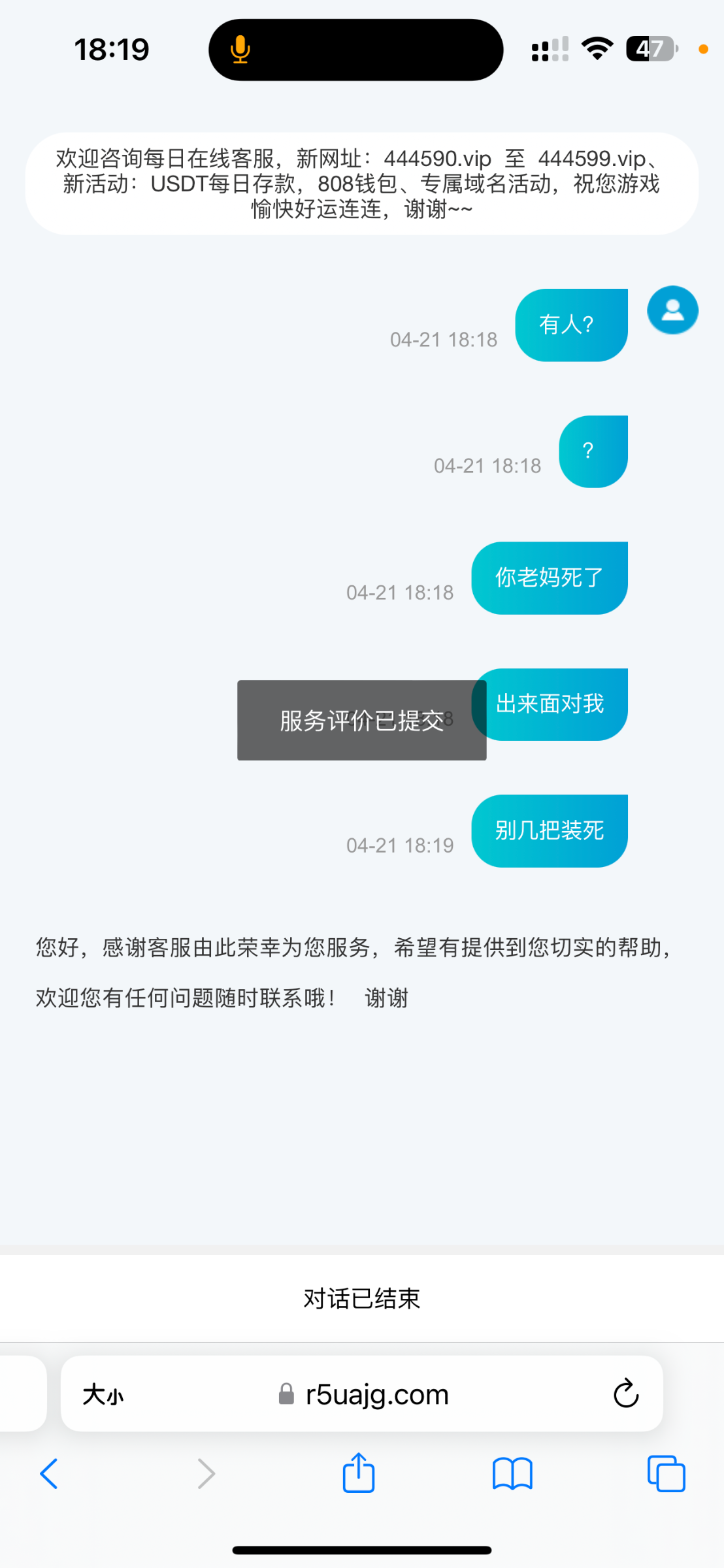 客服是在线的,骂了马上关闭聊天