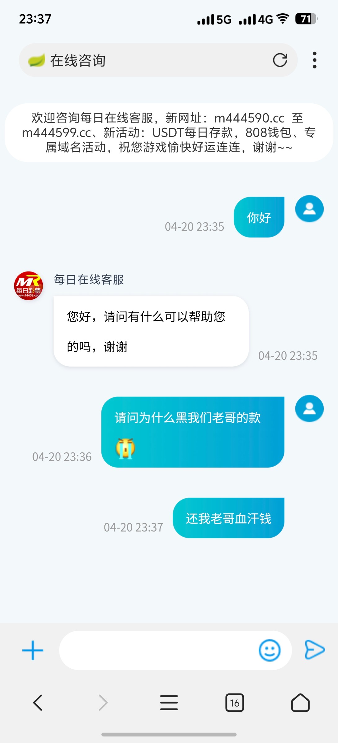 king666 ▶ 判官 老哥发了,我一直换ip聊,这个客服脾气太大了 9月前