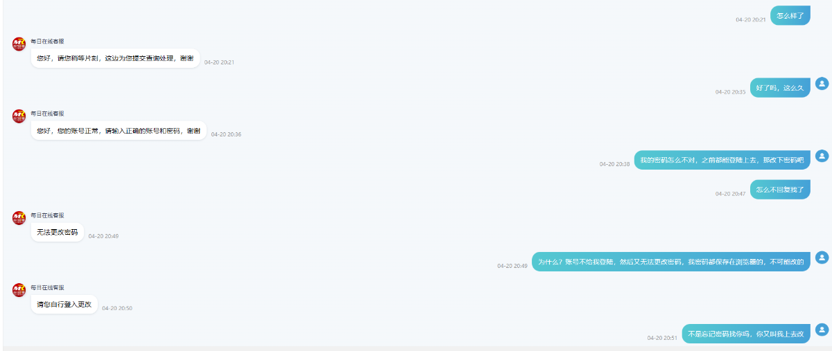直接拉黑我,客服都聊不上,账号也上不了,还有这种操作的吗,这个什么黑台也太小气了吧,真没想到,账号都不给上了