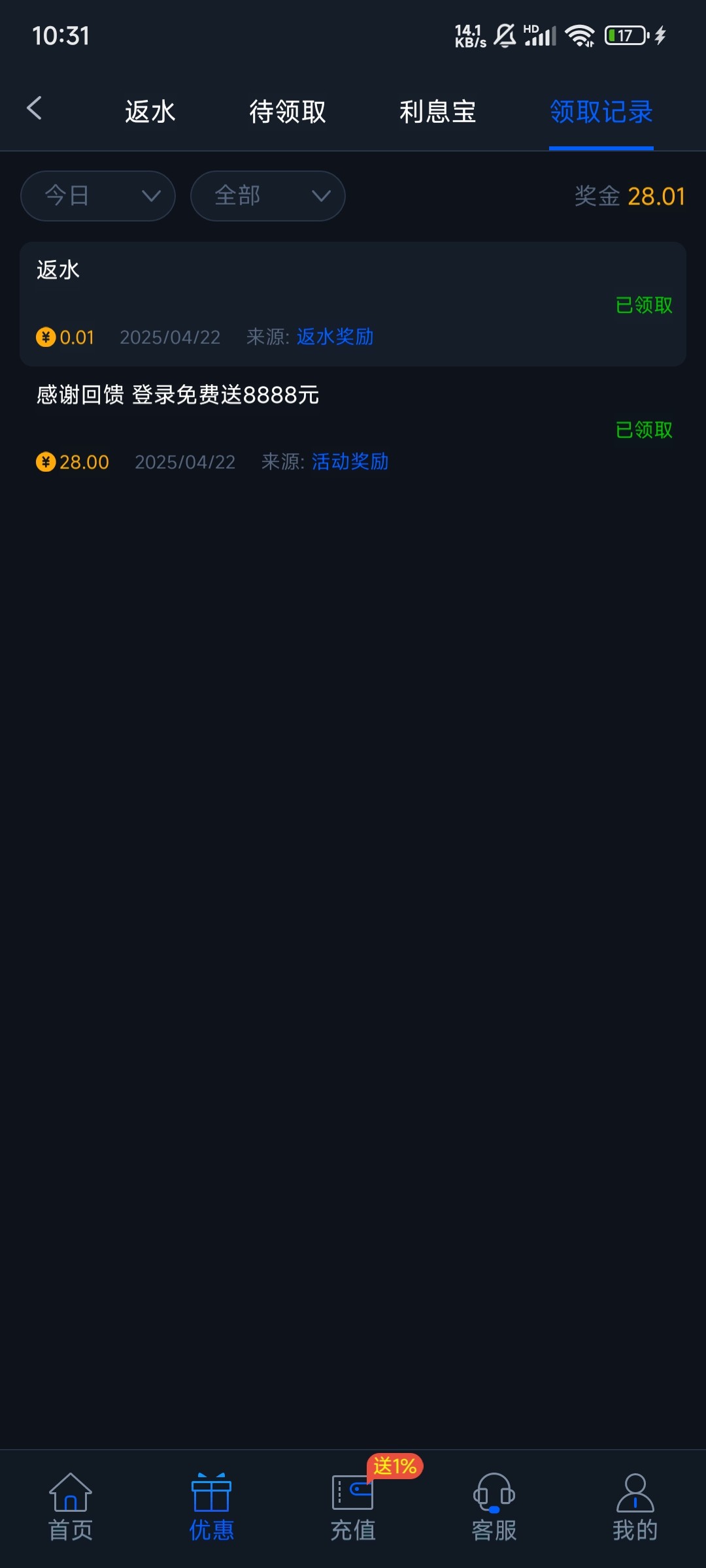 充了7 8千就送28 呵呵