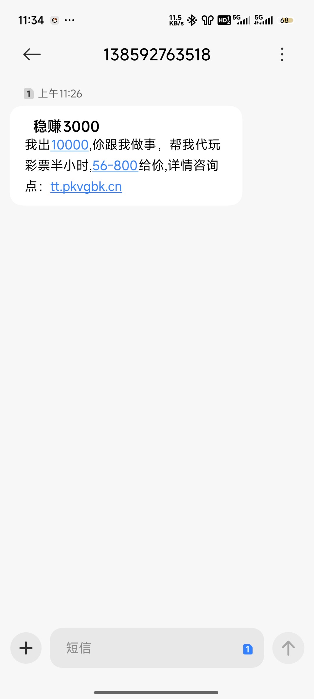 我出10000,伱跟我做事,帮我代玩彩票半小时,56-800给伱,详情咨询点:tt.pkvgbk.cn