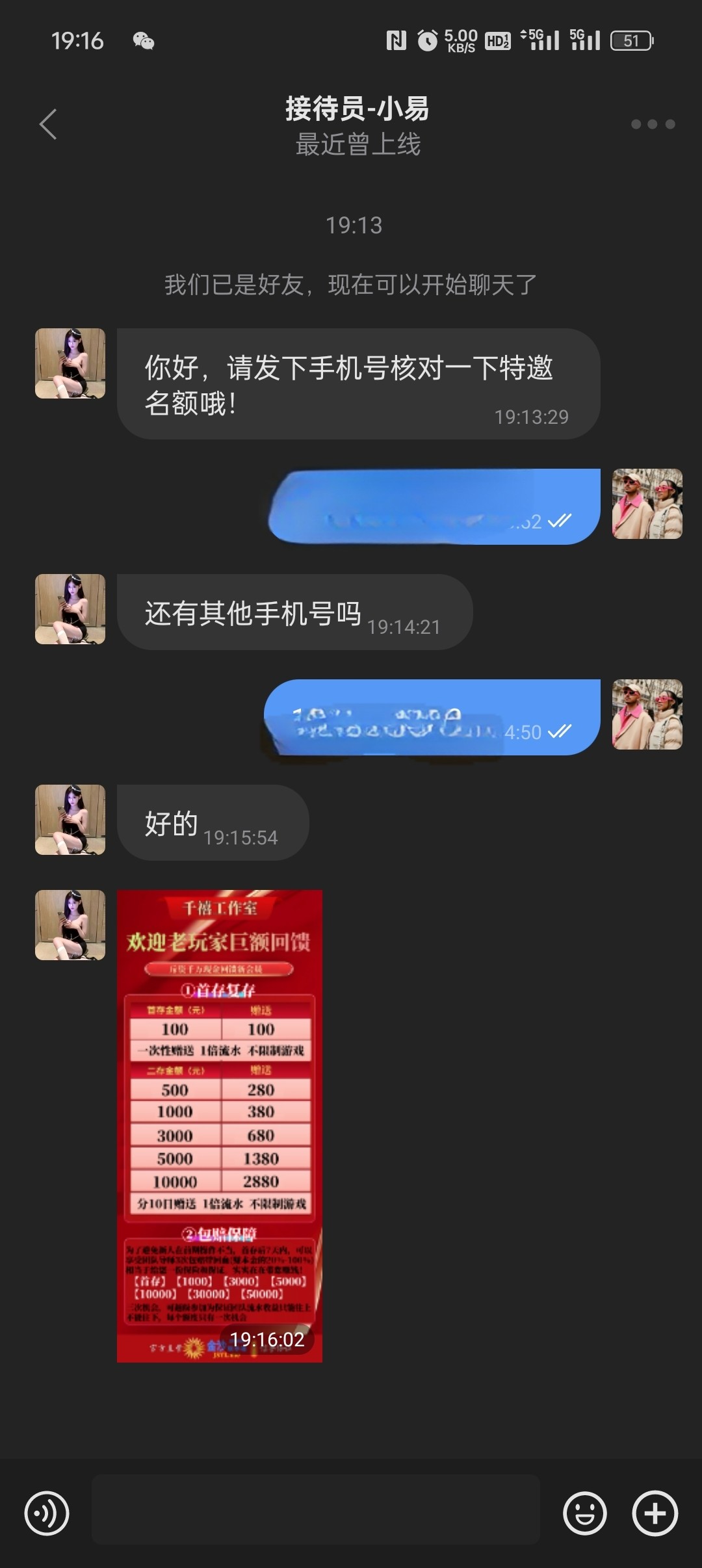 充了100直接拉黑禁用账号了 有接到电话的要注意了