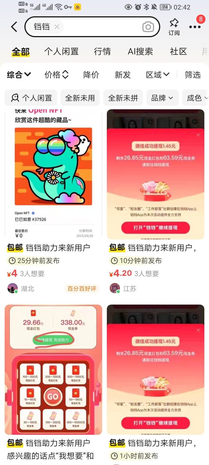 任务两块多加自己秒提一块多刚好快乐水。自己去各大任务平台做吧。某鱼高点