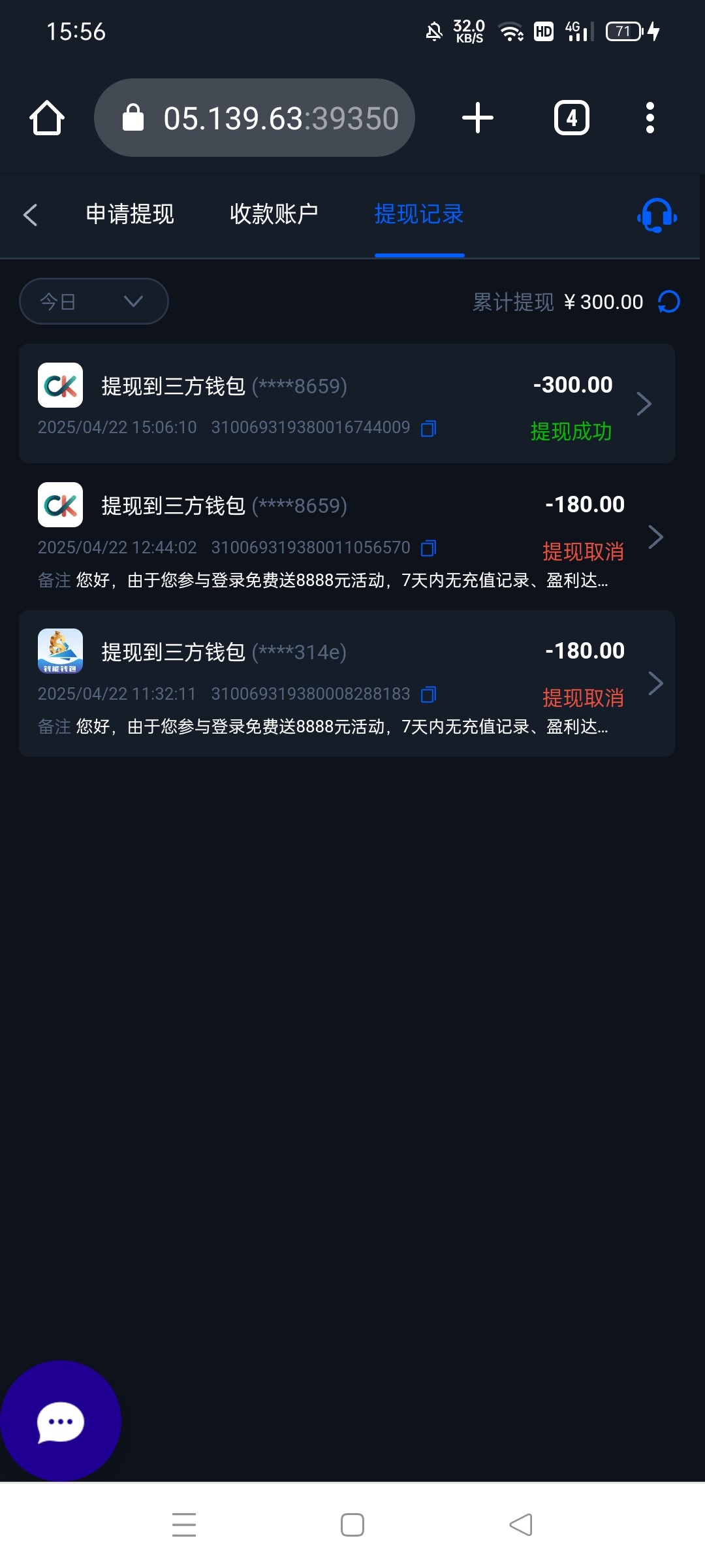 我提现300给我号都封了,他妈的