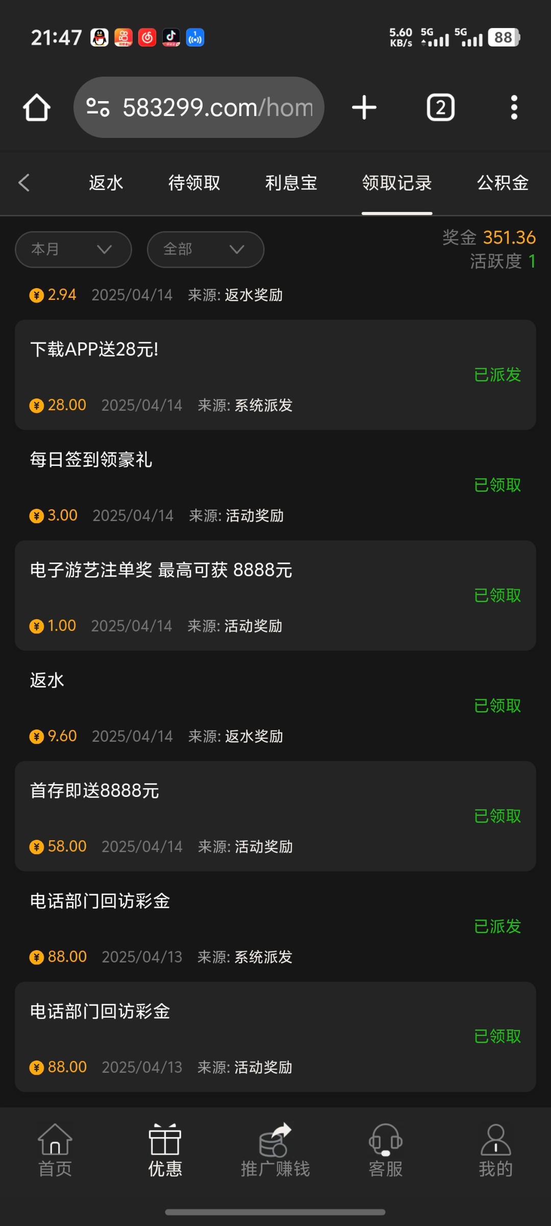 今天这个台两块钱反水出了100