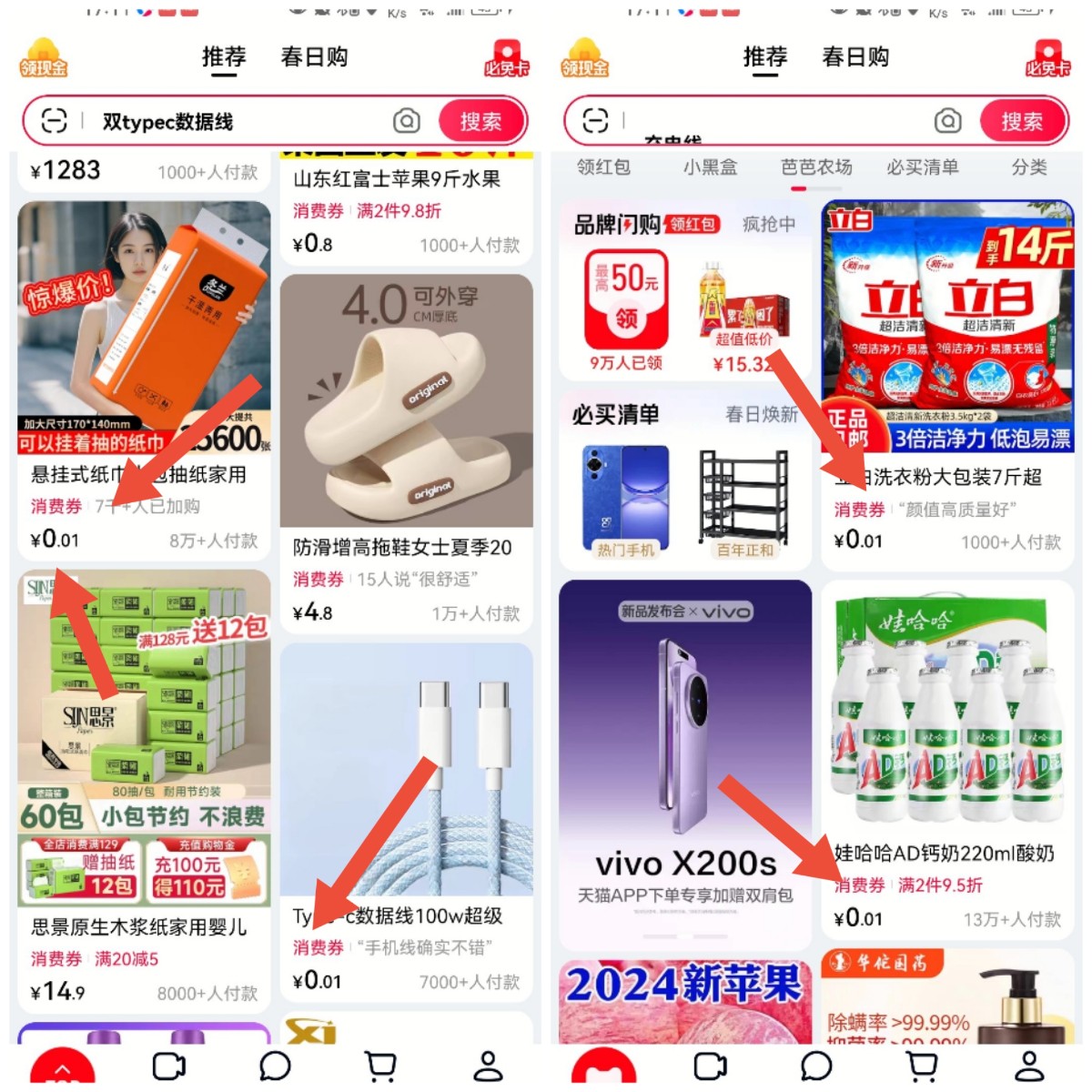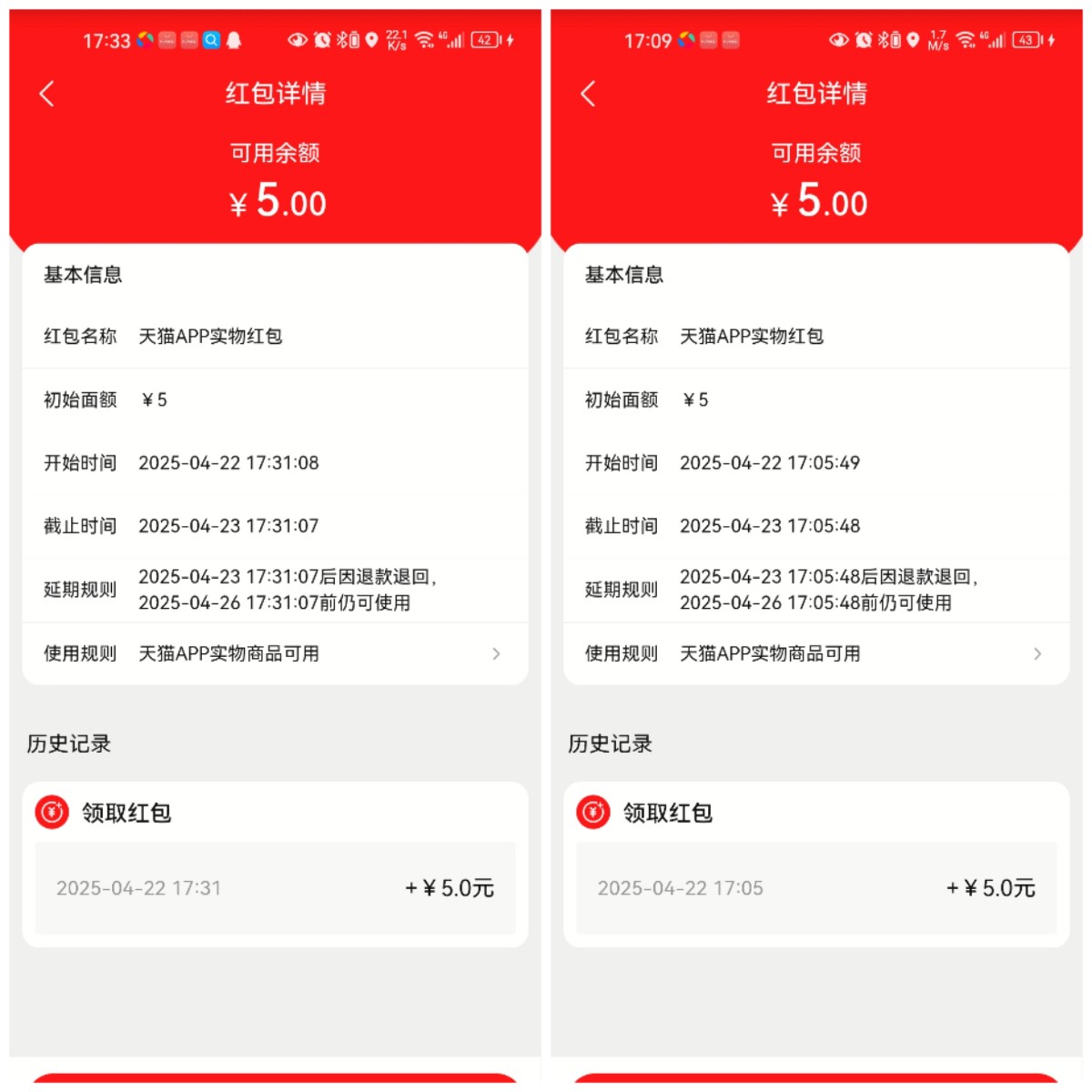 自己去下载个天猫登录就有。,我3个号有一个是新号有5和6两张无门槛,没有的就换号去 一般都会有