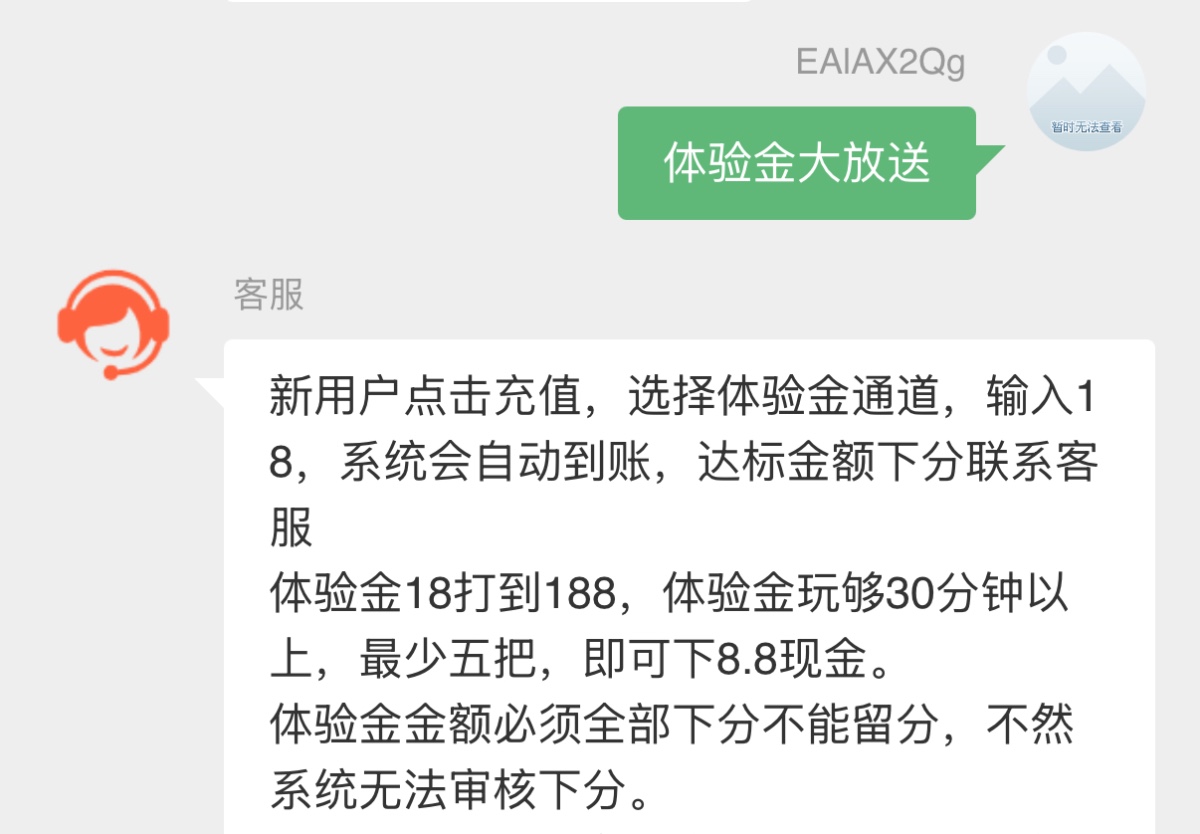 新用户点击充值,选择体验金通道,输入18,系统会自动到账,达标金额下分联系客服
