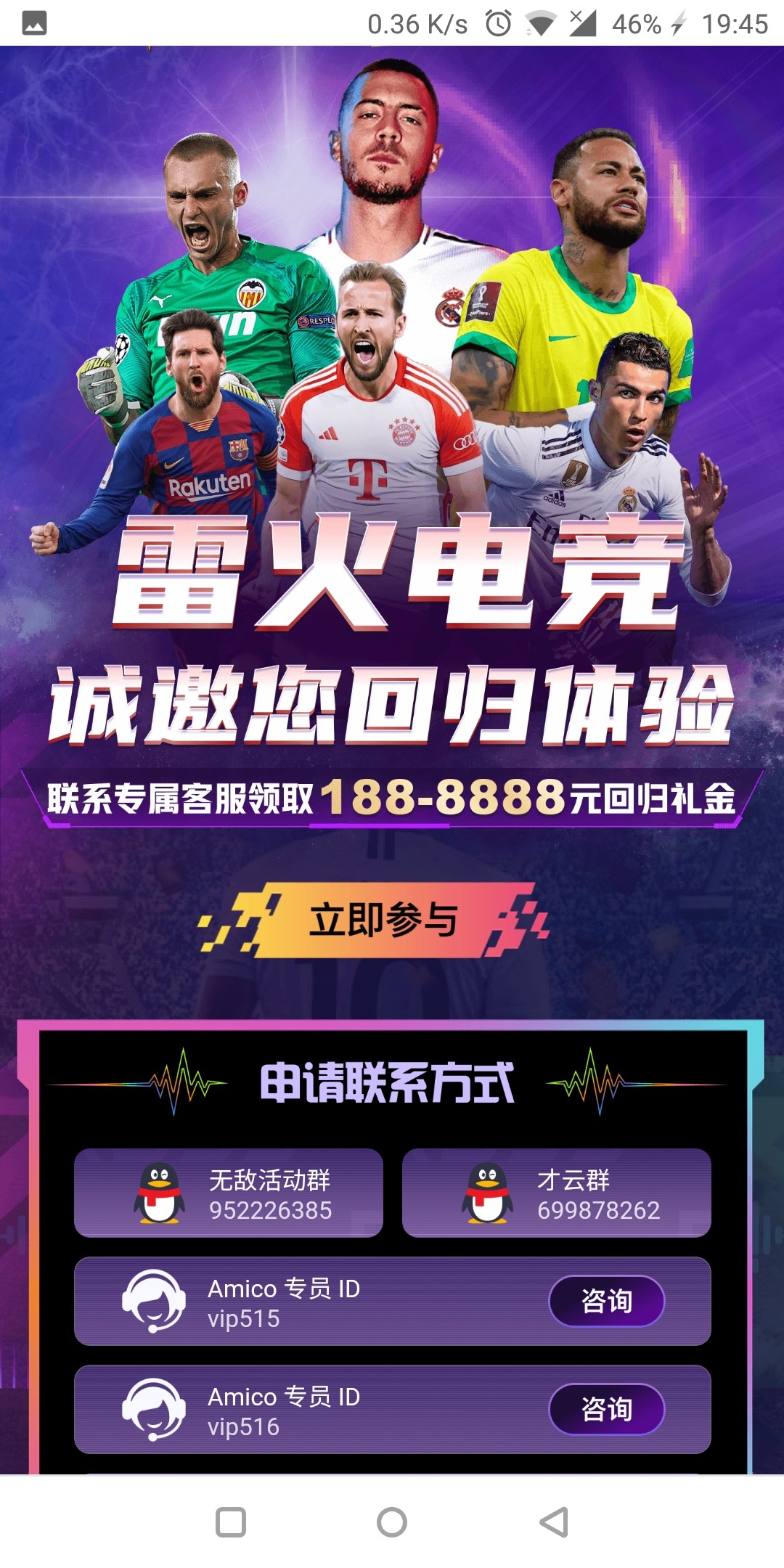 雷火近30天没申请过线下回馈,且老会员有vip等级的,加专员申请。