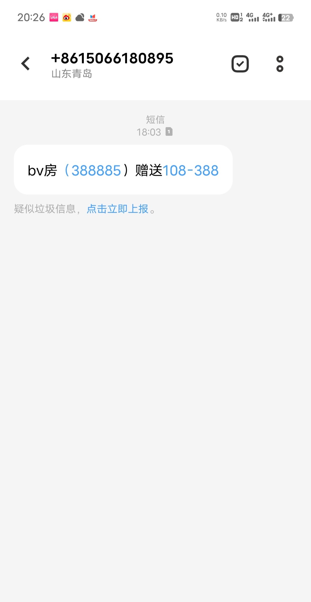 收到短信去的,有玩过BV的可以去碰一下,我领了108没打出来