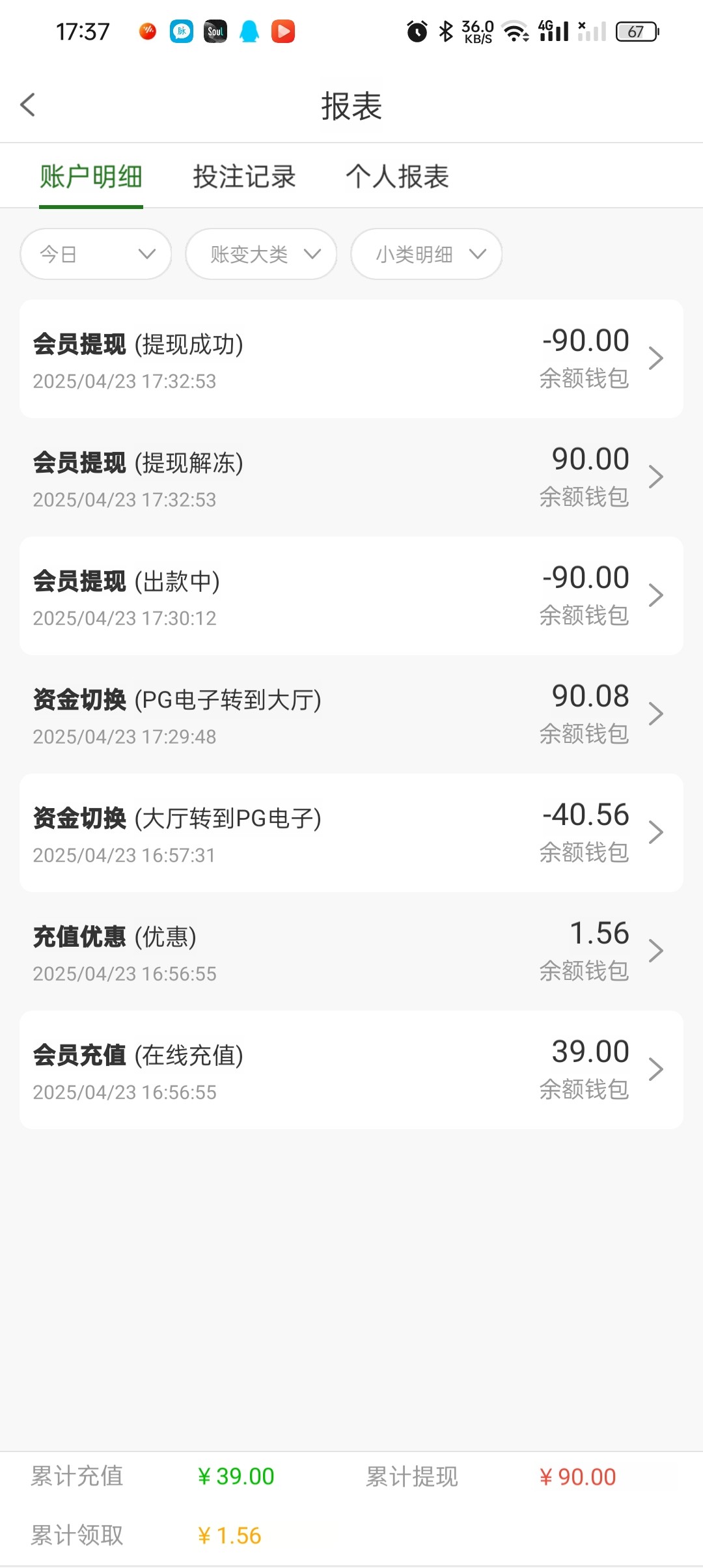磨了半个小时上不去,流水够了,果断提,这个38+38系列我都白嫖到