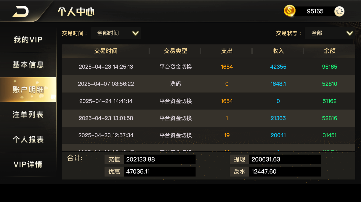 他总的充20万,也总的提了20万,没有啥输赢,根本不多。