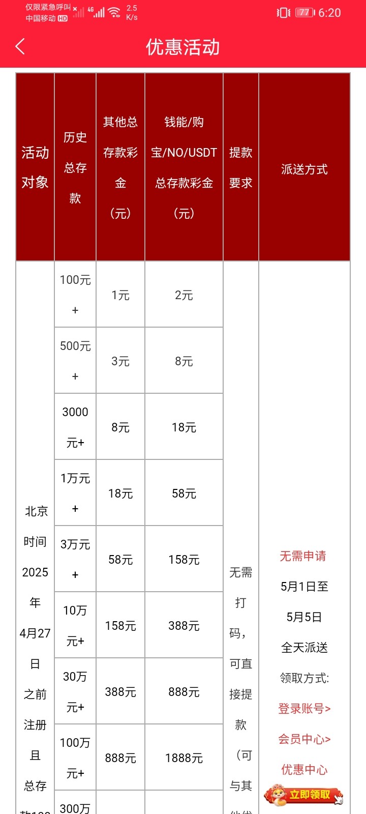 现在变成一年的总存款            牛逼了  又把活动改了      这系列也越来越不行了
