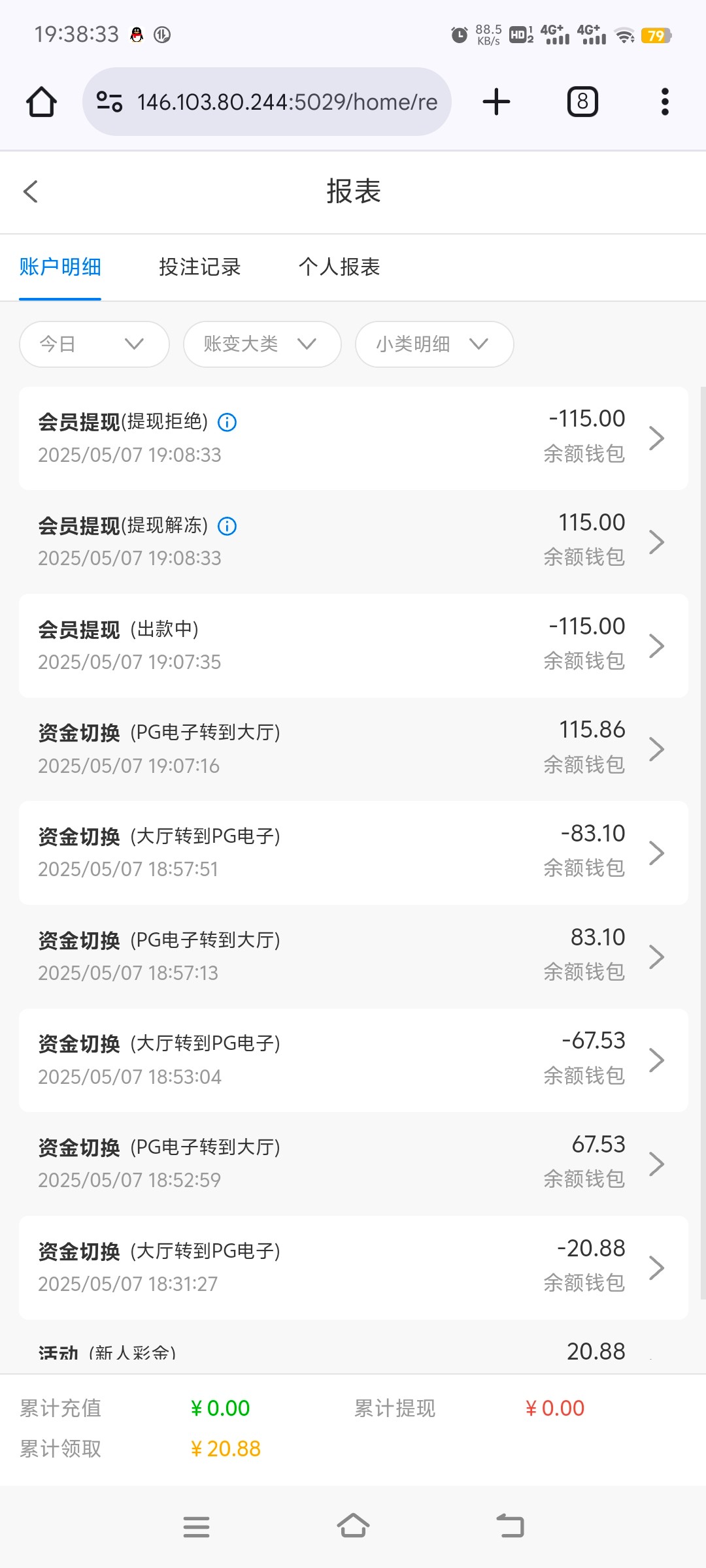 黑台,接到电话注册领了20.88 打到115提现被黑了余额也被扣了。