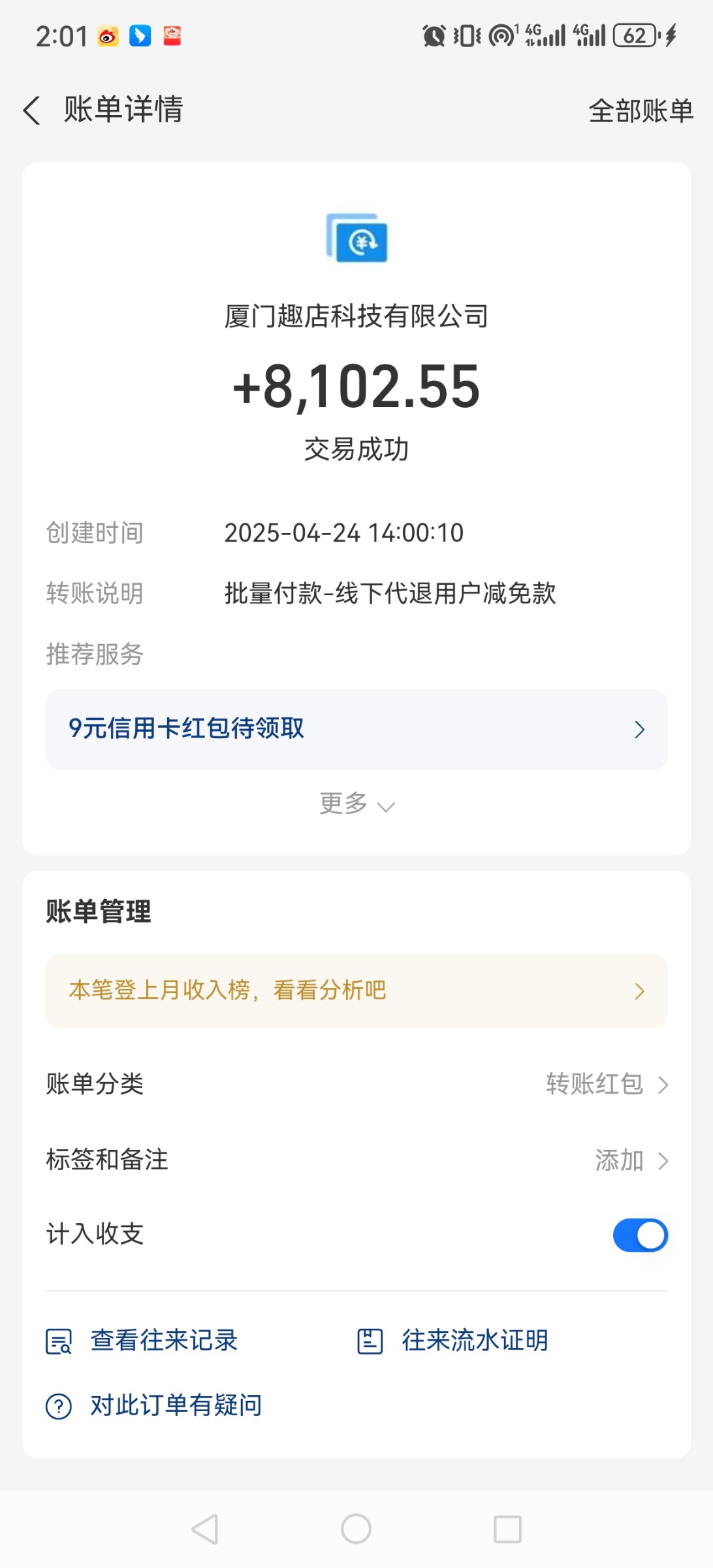 卧槽,今天大起大落,本来用最后50打了一晚上麻将,爆奖了,干到1千,今天早上起来又忍不住,乱干,最后输得只剩100。留着抽烟吃饭。然后反水2块一下赏金女王就爆了300。准备拉到五百提现。突然趣店给我转了一笔钱,一看4300,起飞。来分期我还欠2万没还,学生时期的钱也可以退的,各位老哥快看看到账没