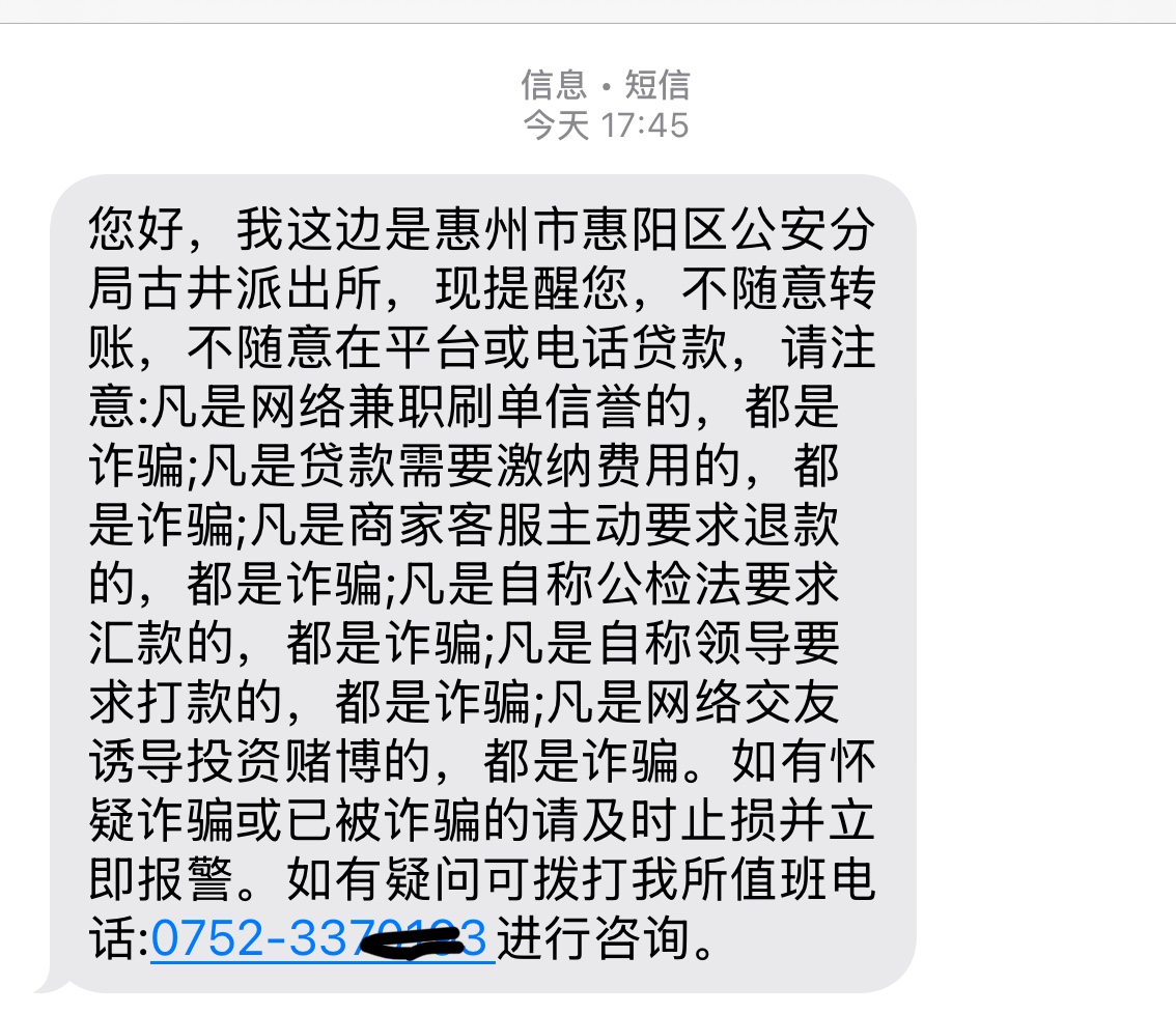 问我是不是接到诈骗电话,要我去派出所见面,还好我是本地人,跟他说了几句,他才不用我过去,境外电话还是拦截了