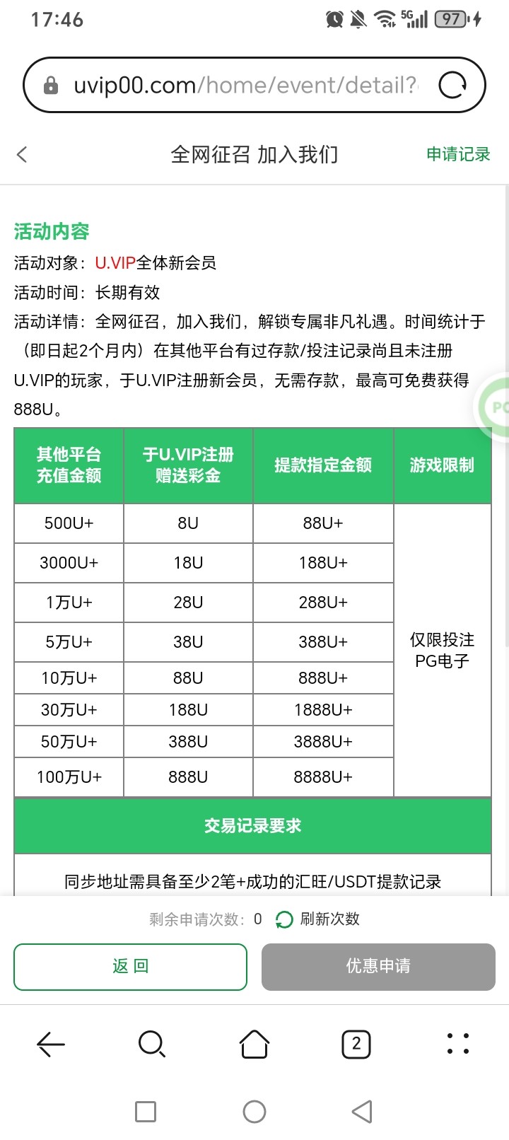 申请个几把,u没有用,要汇旺有充值提款过,你帮别的没有用,都拒绝了