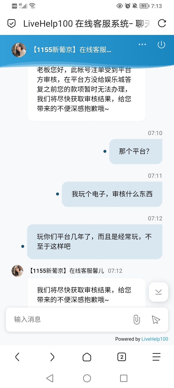 这个台子玩了几年了,经常玩之前出款一直没问题,昨晚700打到3500,提款就说审核,一个晚上了
